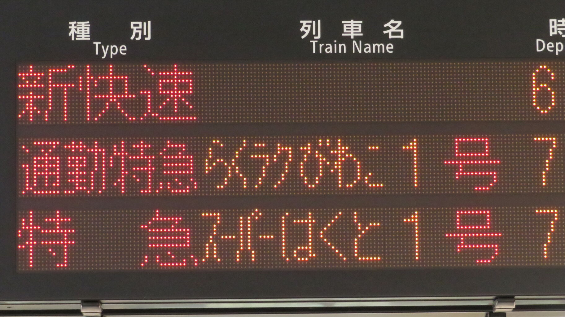 こちらは種別欄が広く、略さず 「通勤特急」 と表示されています。
