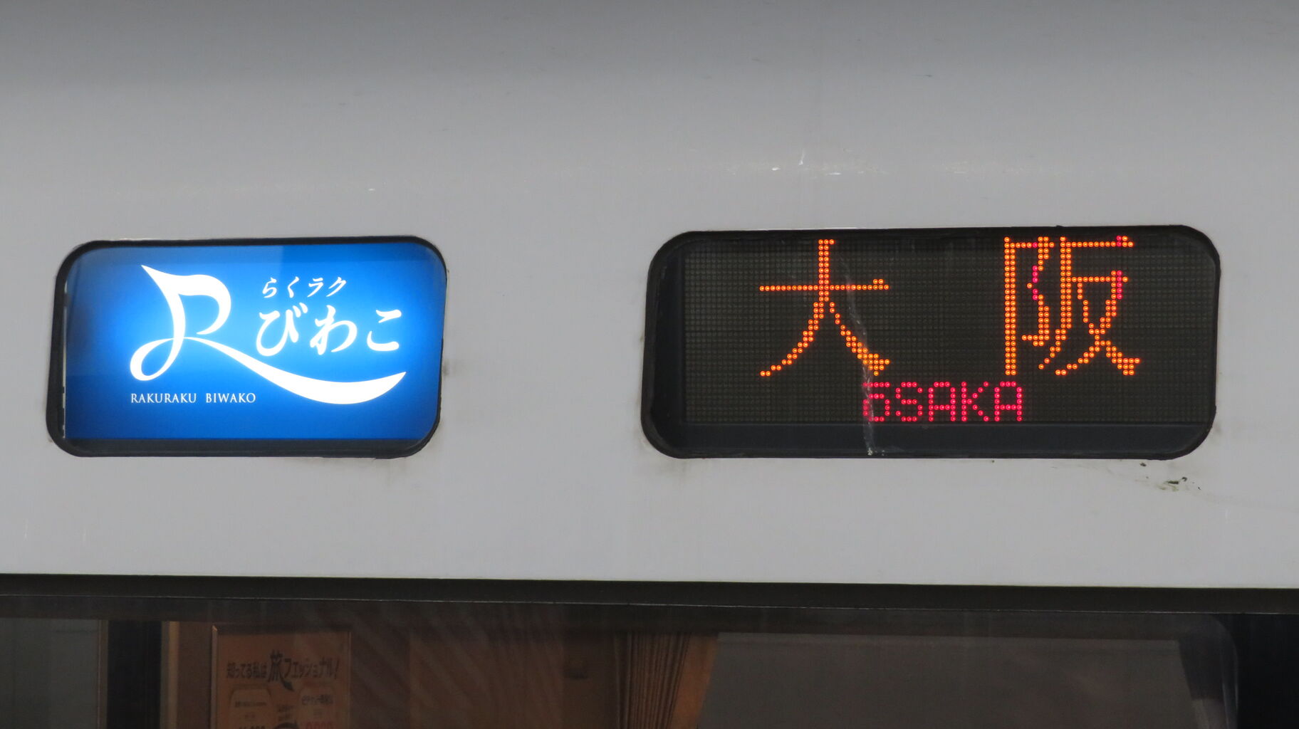 一番下の段に、通勤特急 「らくラクびわこ」 大阪行きの表示が出ました!