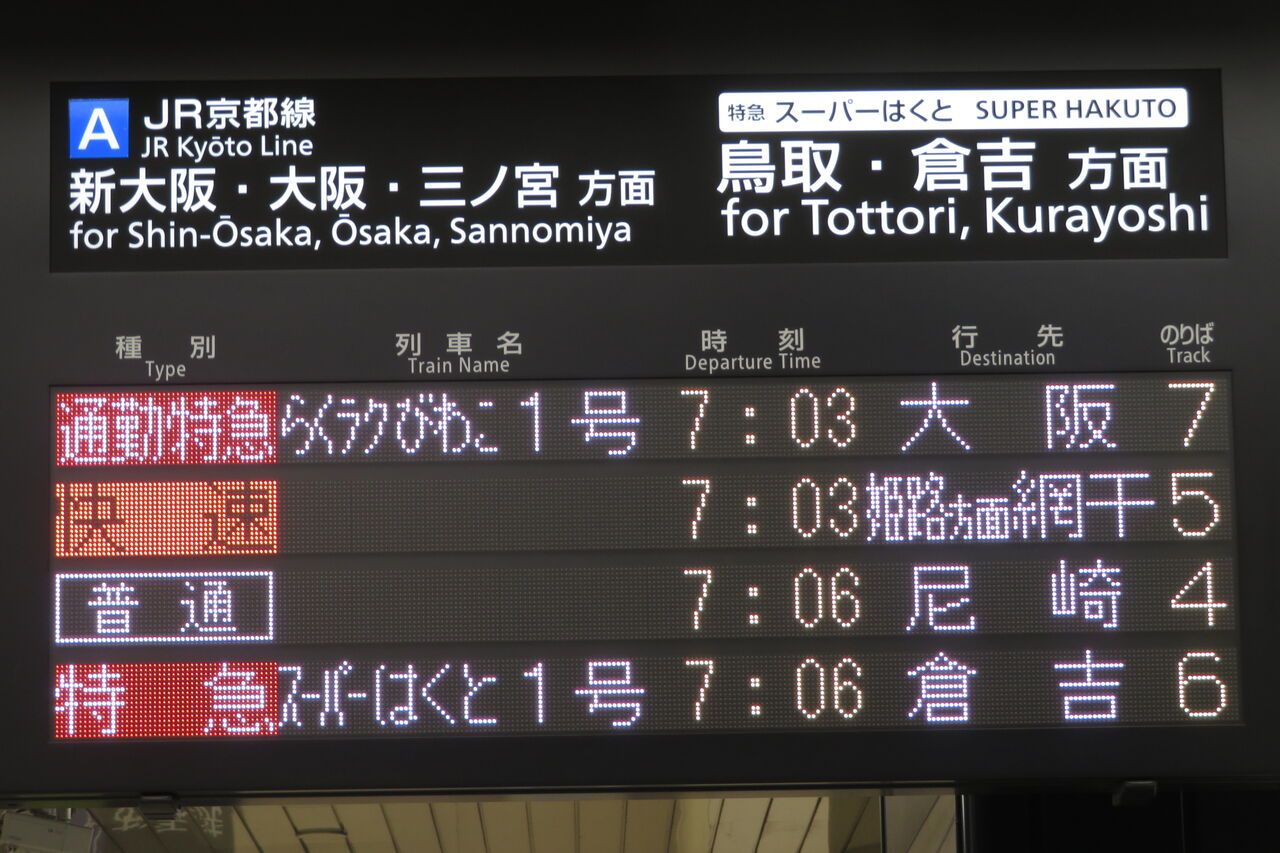 スーパーはくとは、2024年3月のダイヤ改正で、大半の列車が京都~大阪駅間で運転取り止めとなりました。