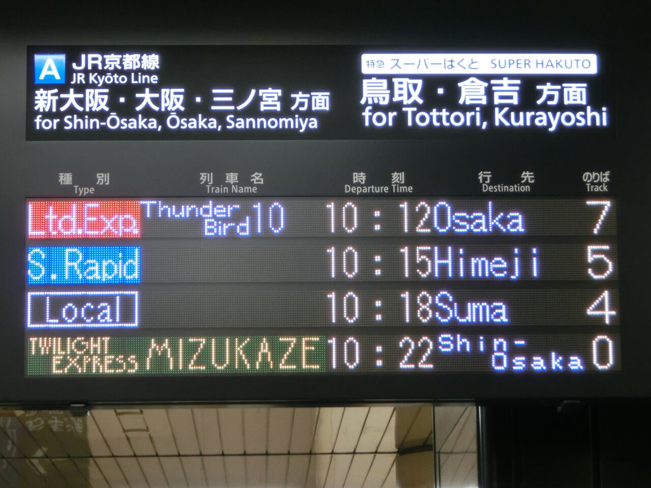 今回、2020年11月に京都駅を訪れた際、新快速の英語表示を撮影したので、このブログで簡単に紹介しておきたいと思います。