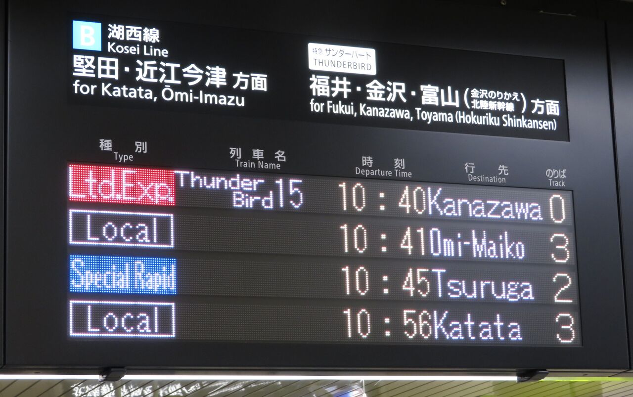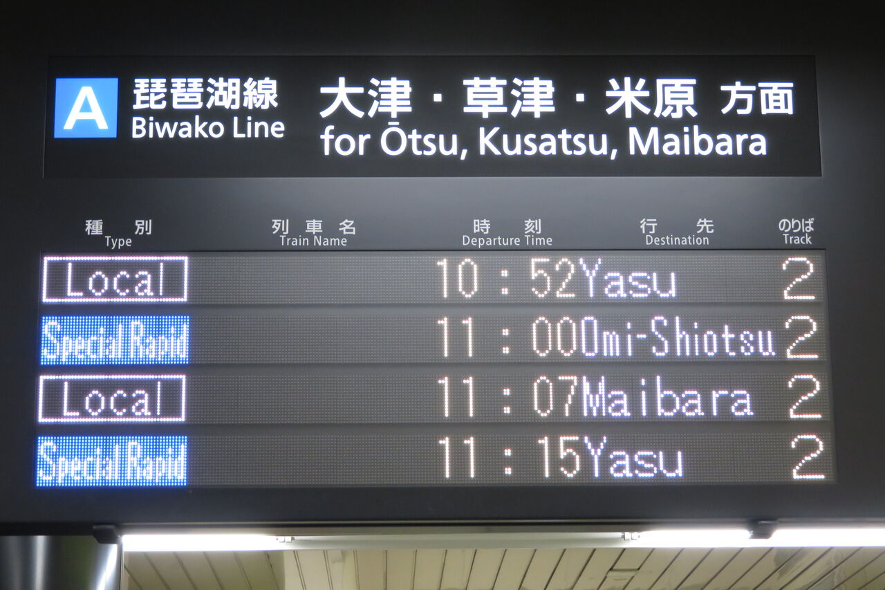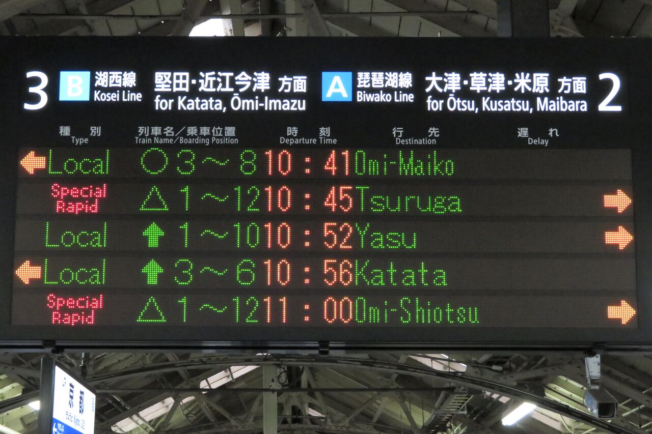 こちらは、2・3番のりば(琵琶湖線・湖西線ホーム)の発車標です。