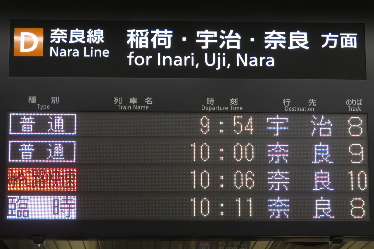 「臨時 奈良行き」 が、一番上の段に表示されました。