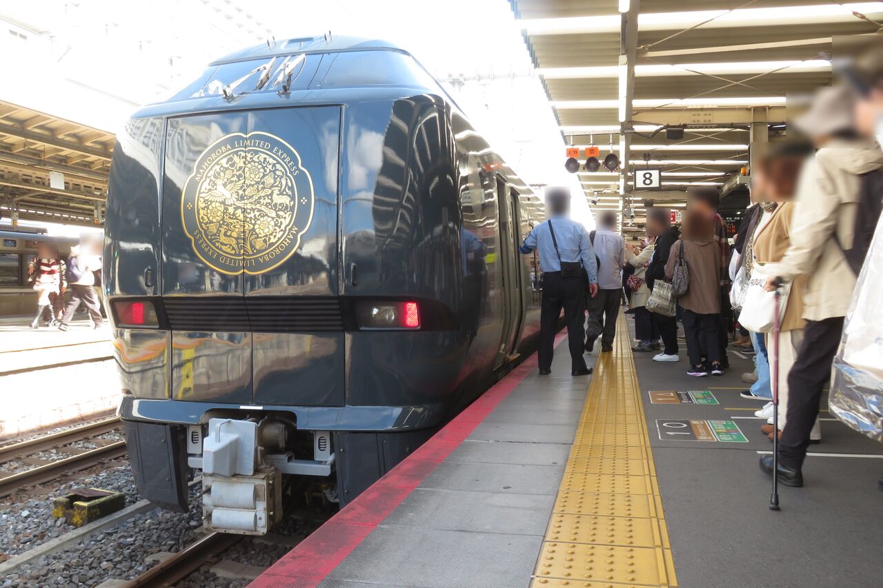 この電車が車庫へ引き上げた後、8番のりばに 「いにしへ」 号が入線することになります。