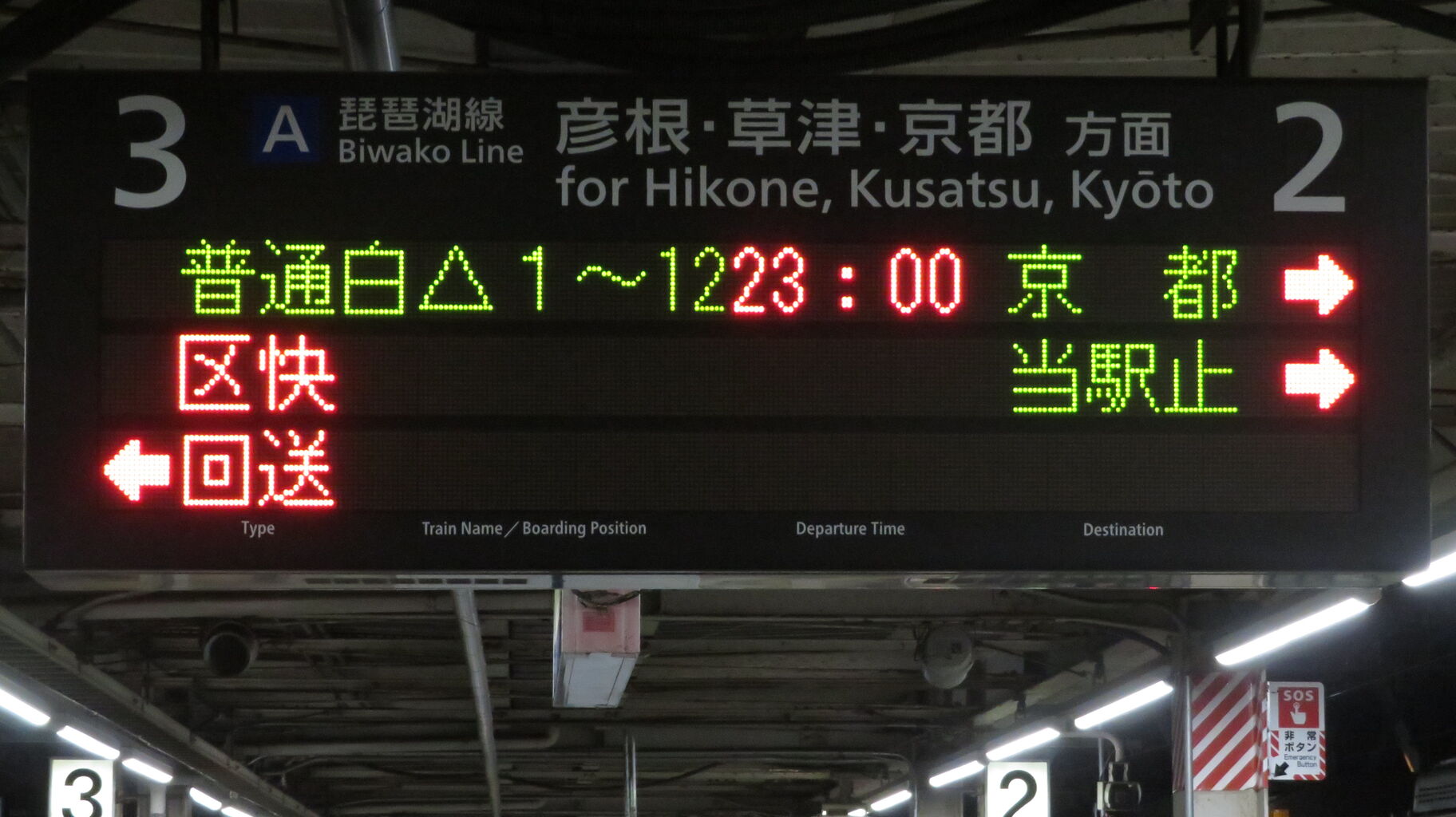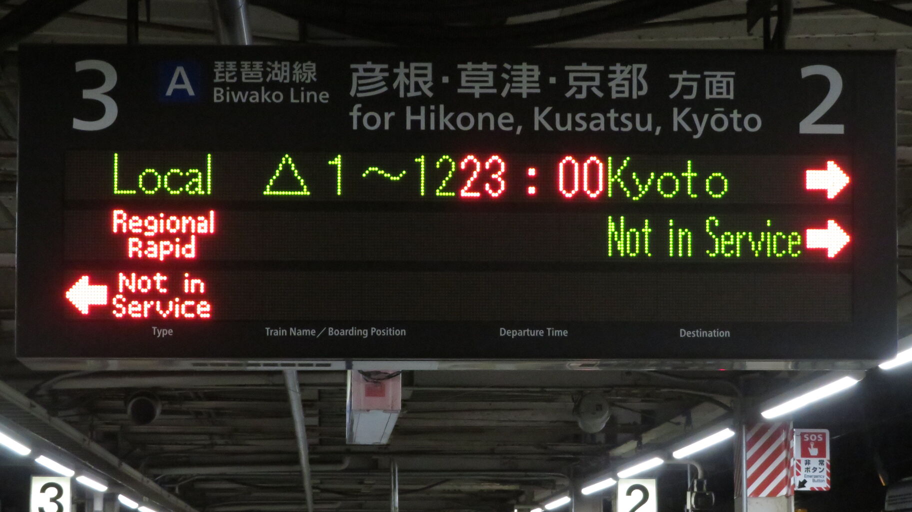 JR東海では、区間快速の英語表記を 「Semi-Rapid」 としていますが、米原駅の在来線ホームはJR西日本が管轄しているため、発車標には 「Regional Rapid」 と表示されます。