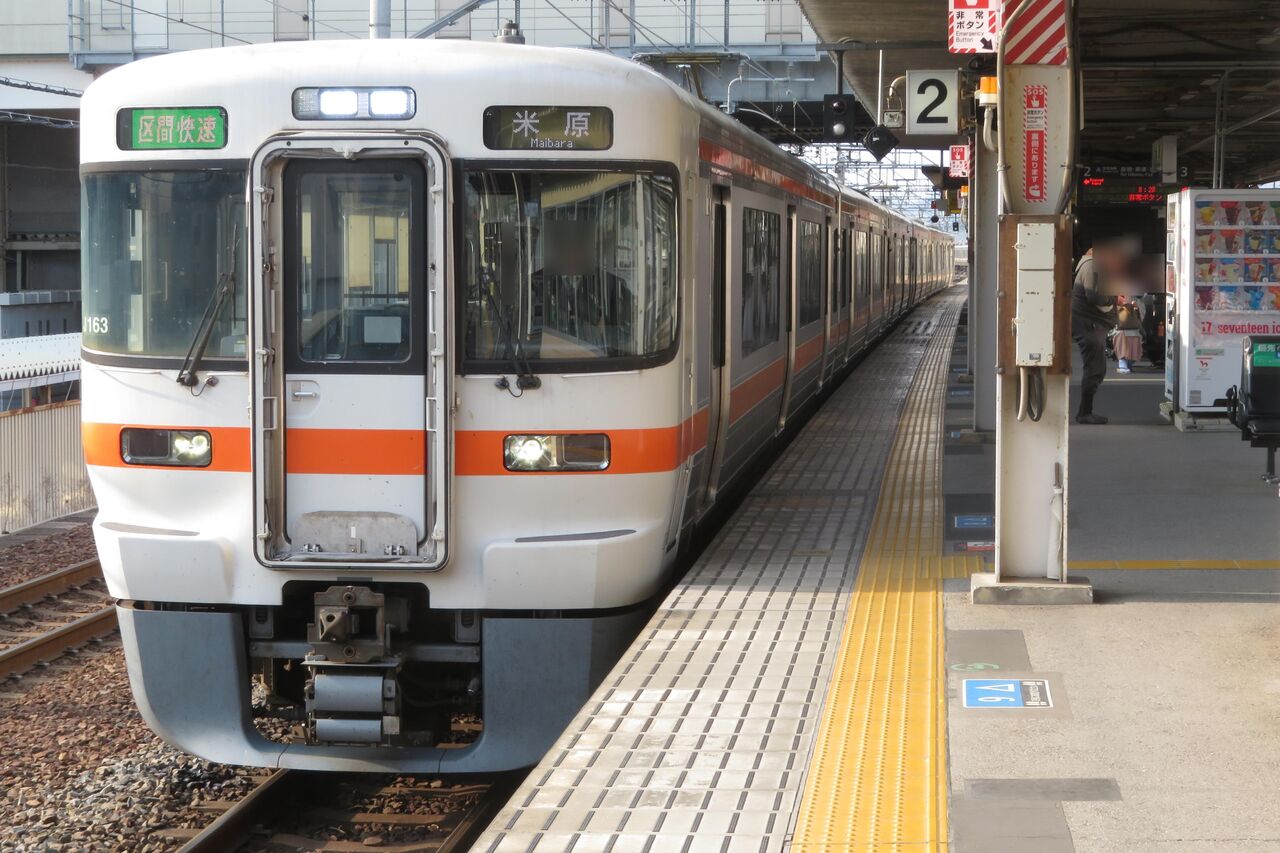 2024年6月現在、米原駅から名古屋方面へ向かう 「区間快速」 は設定されていませんが、名古屋方面からの区間快速 米原行きが1日に1本(土休日は2本)設定されています。
