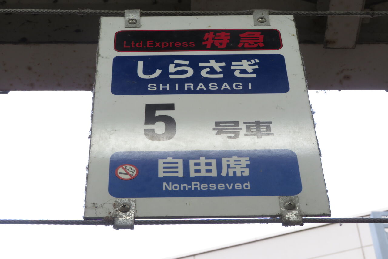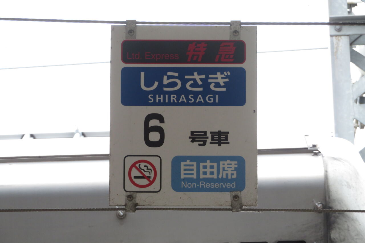 6番のりばにも、しらさぎの乗車位置の吊り下げ札が設置されています。