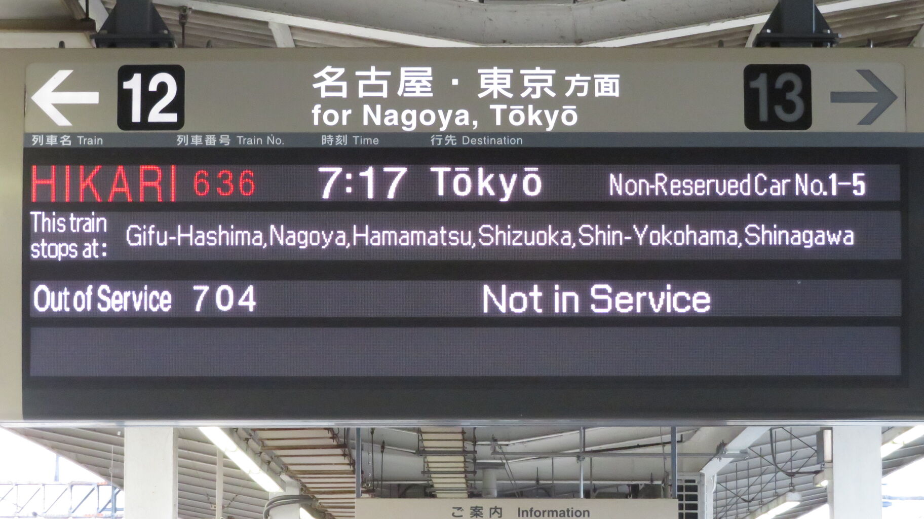 米原駅の新幹線ホームには、これまでフルカラーLEDの発車標が設置されていたのですが・・・