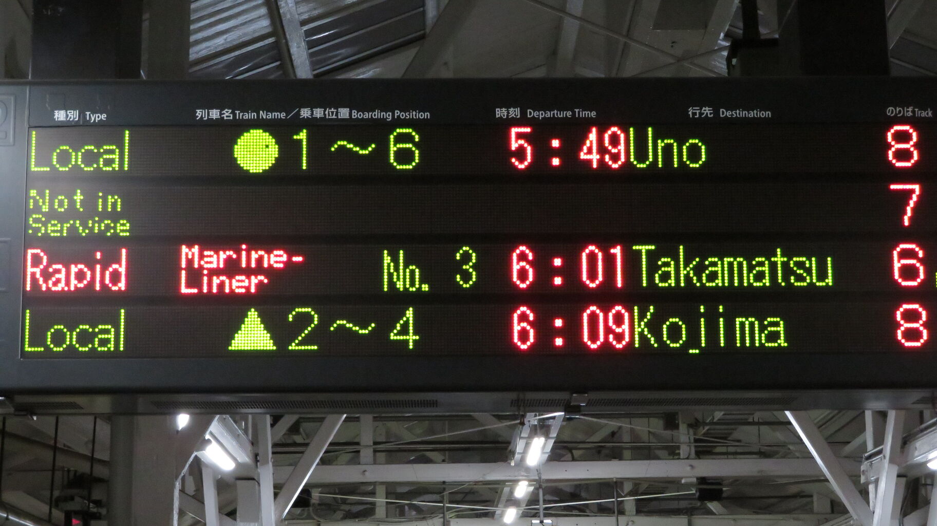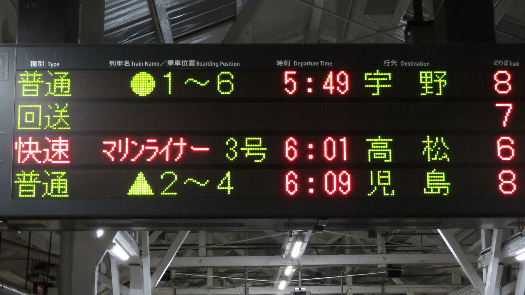 ちなみに、発車標には マリンライナーの乗車位置が表示されません。