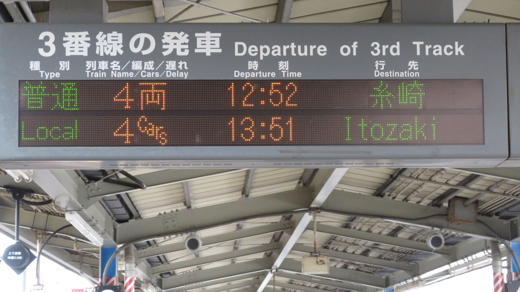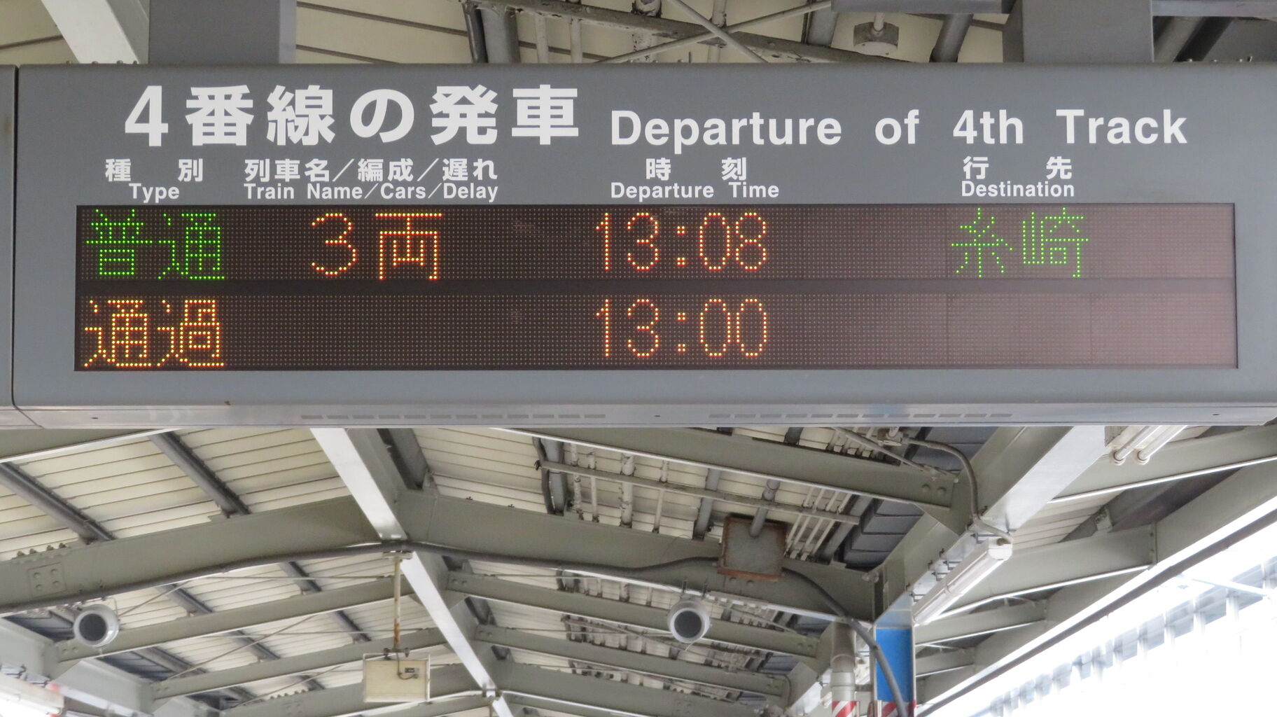 今回は、乗り換え時間が13分しかなかったため、改札口の発車標は確認できませんでした。
