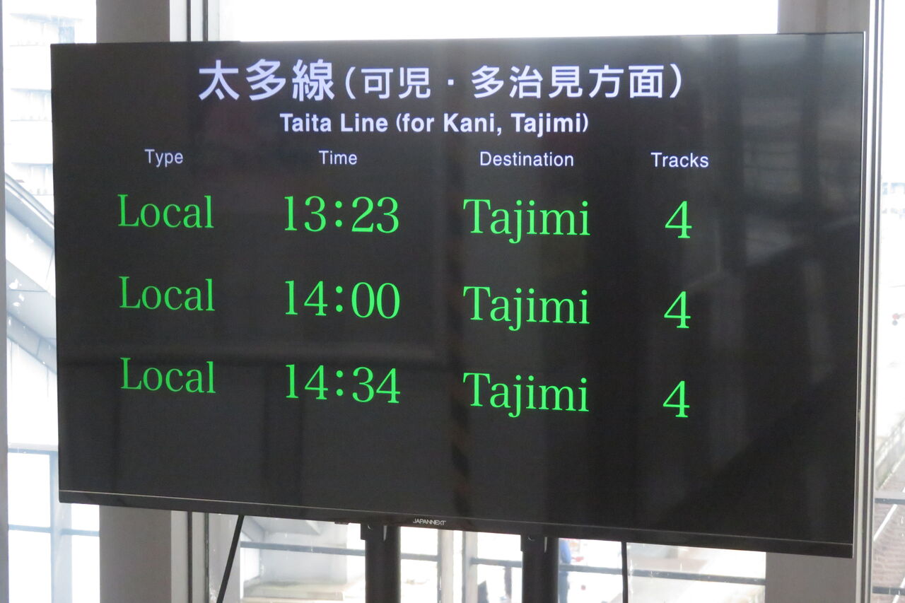 奥に仮設のLCDを置いて、そこに太多線の発車案内を表示していました。
