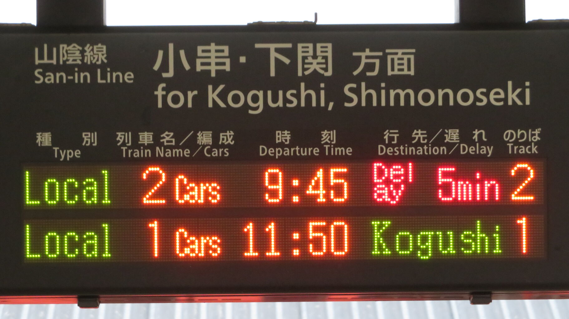自分はこれまでに何度か長門市駅を訪れていますが、遅れ表示を見たのは 今回が初めてでした。