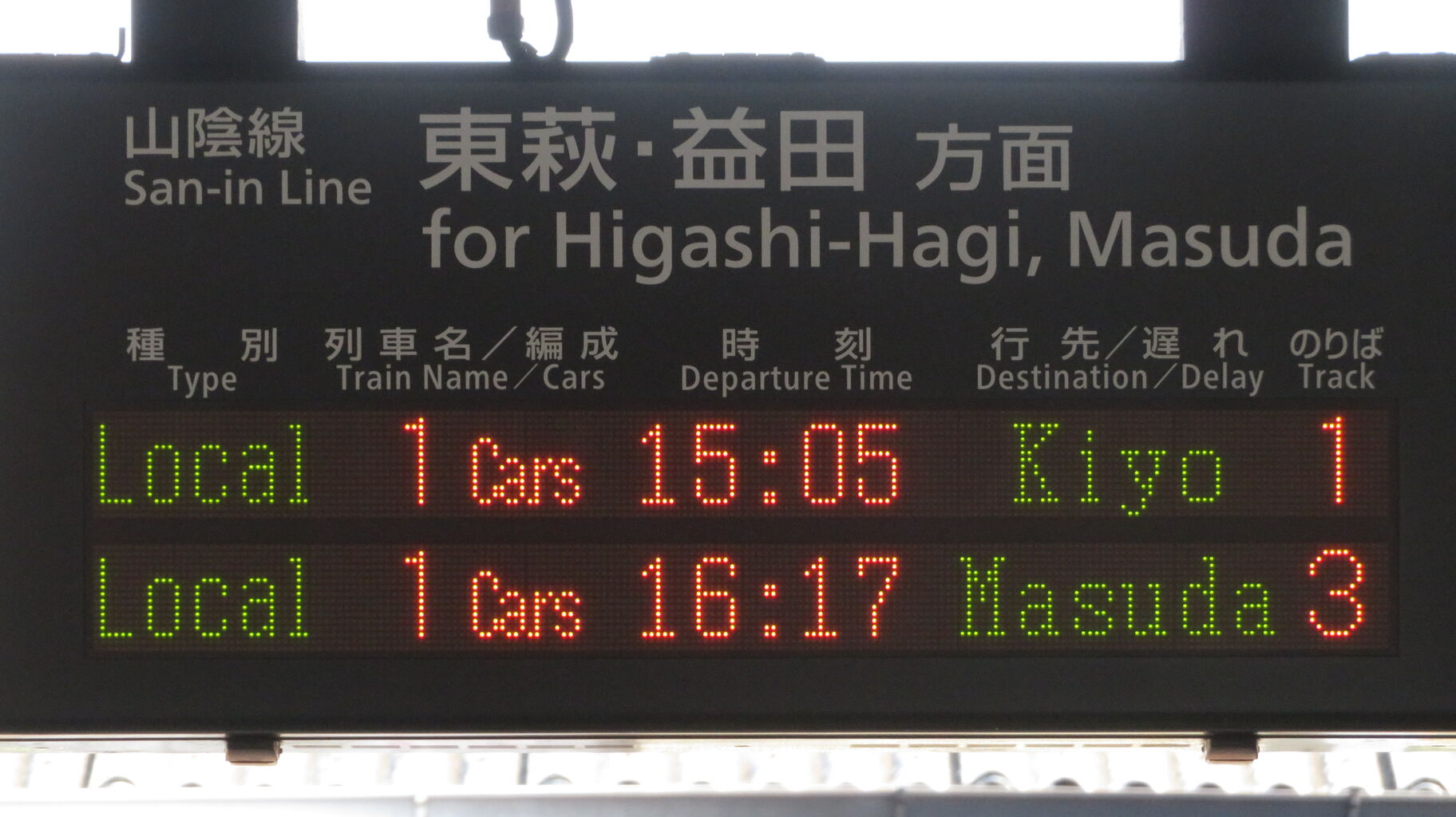 東萩駅を越えて運転されるのに 益田駅までは行かない、唯一の列車です。