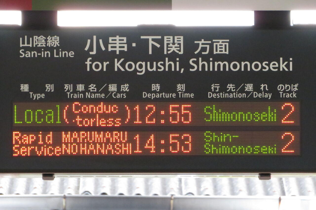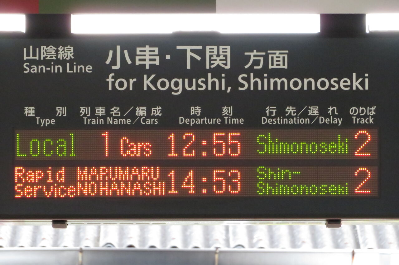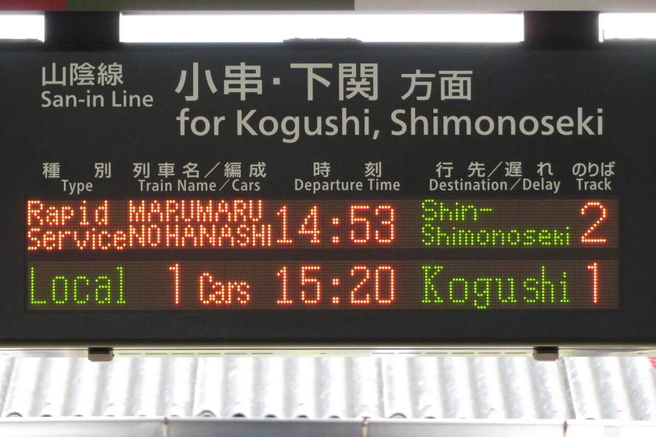 隣にある山陰線 下関方面の発車標には、○○のはなし 「新下関行き」 の表示が出ていました!