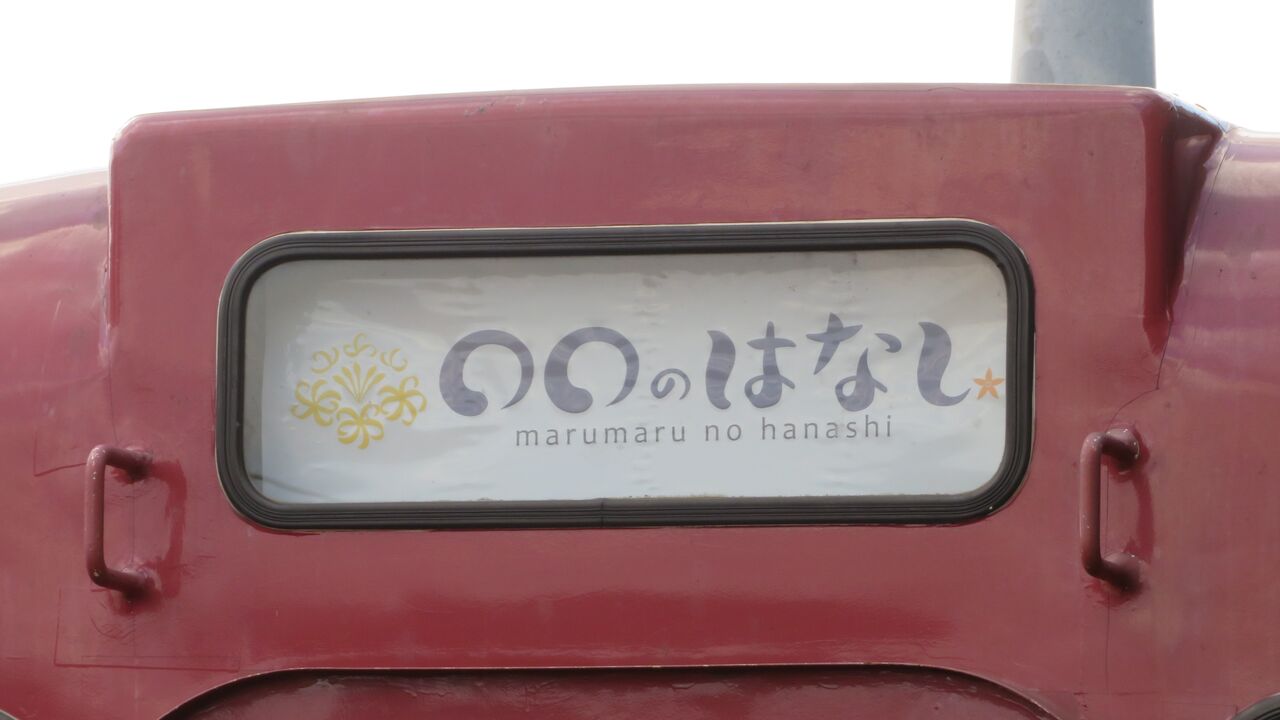 狭い列車名欄に、小さい字で 「○○のはなし」 「MARUMARU NO HANASHI」 と表示されていました。