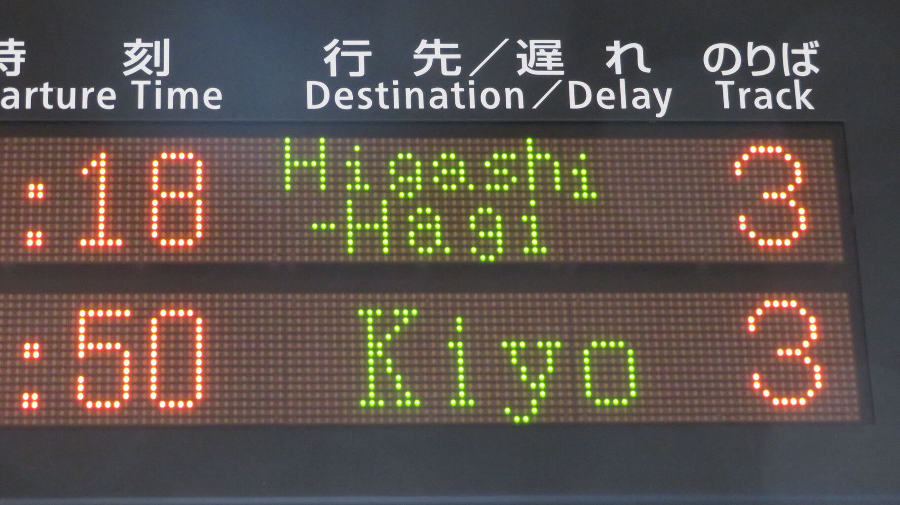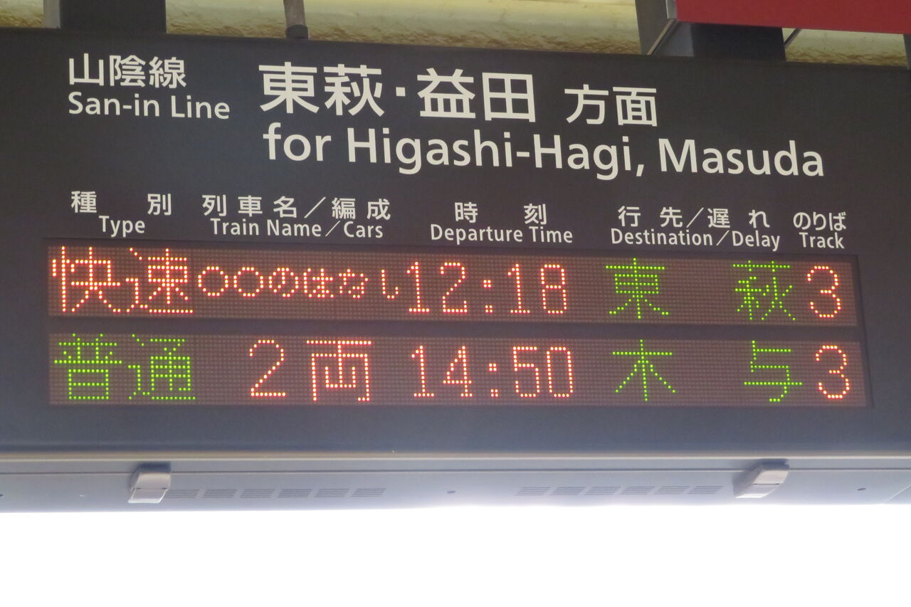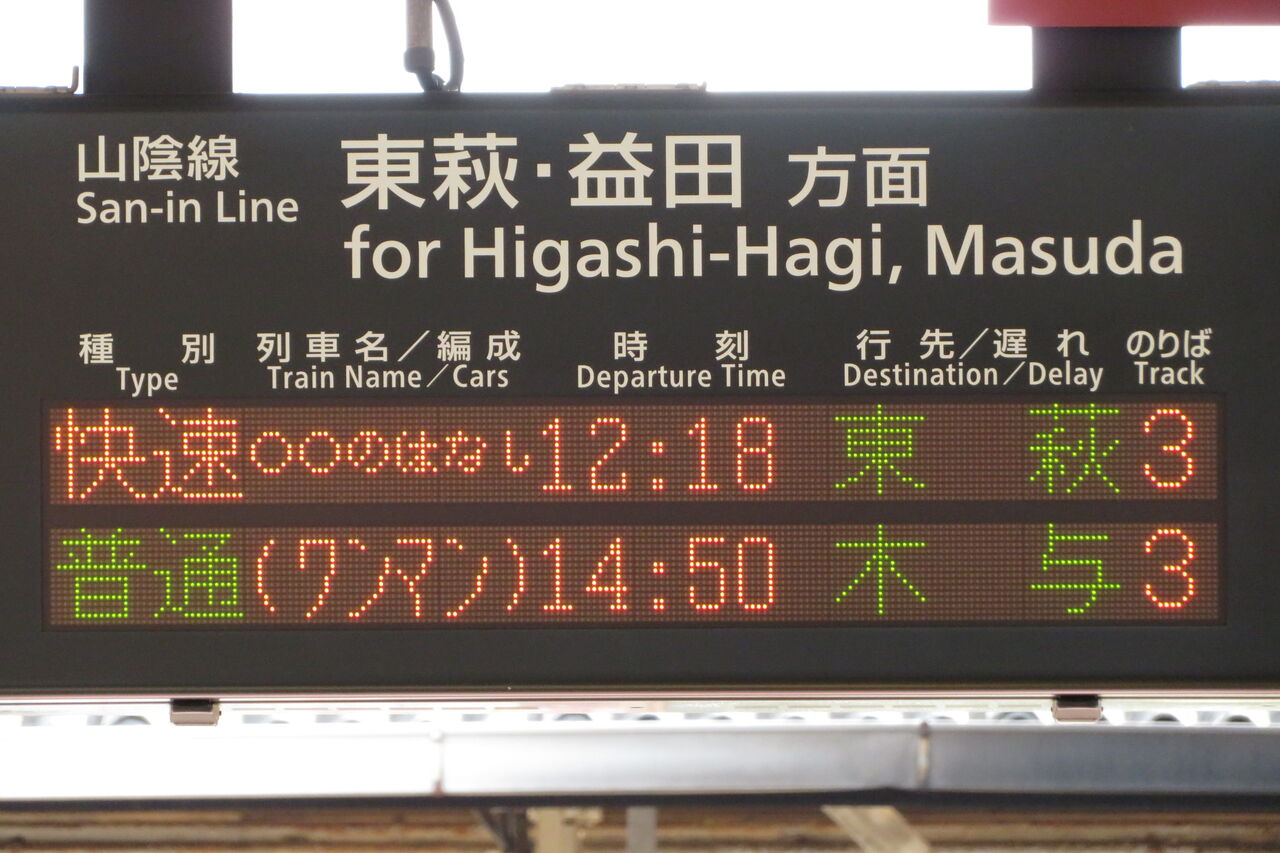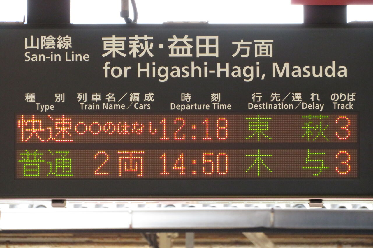 こちらは、○○のはなし 東萩行きの表示です。