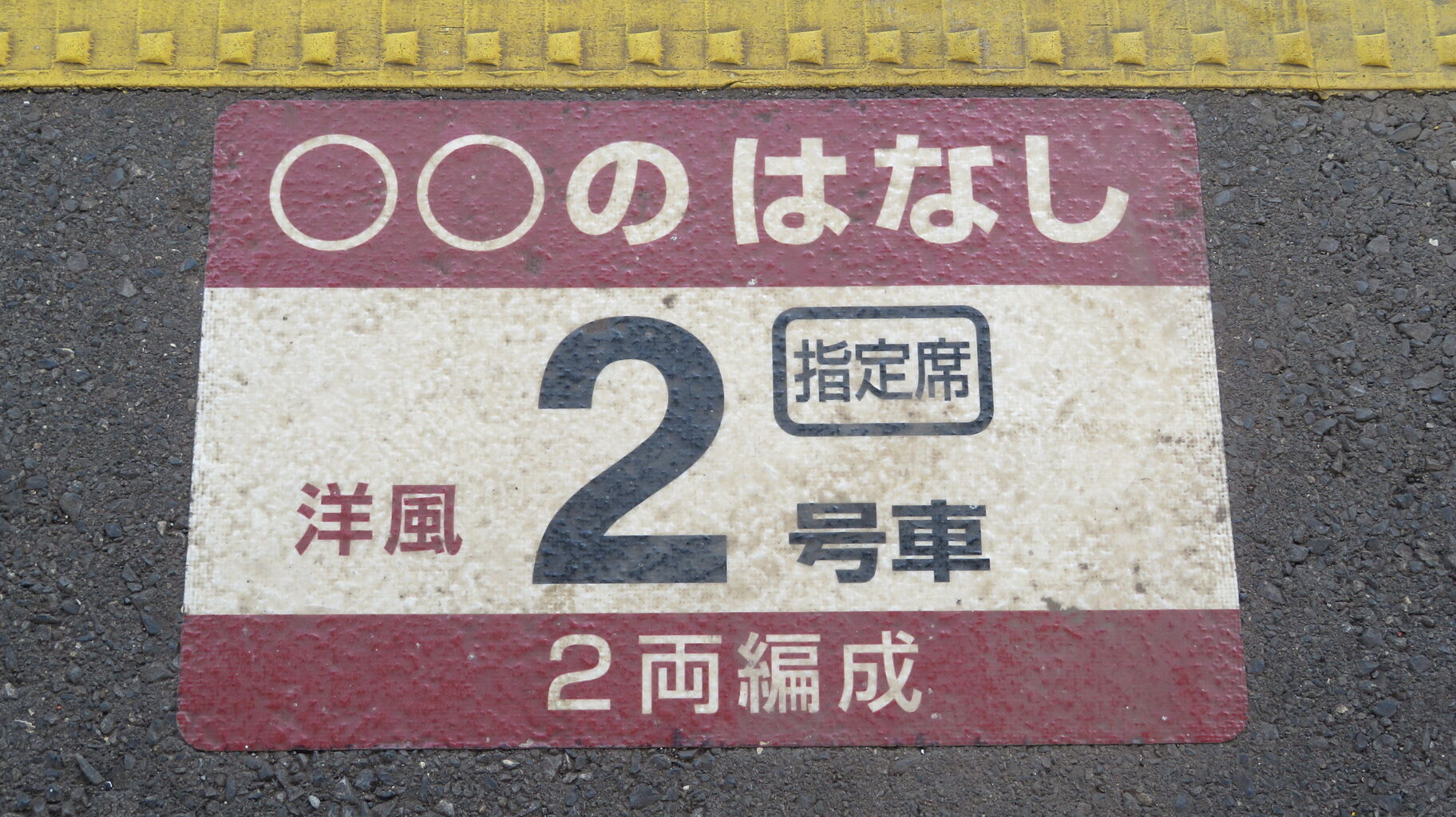 ○○のはなしの乗車位置表示を撮影。
