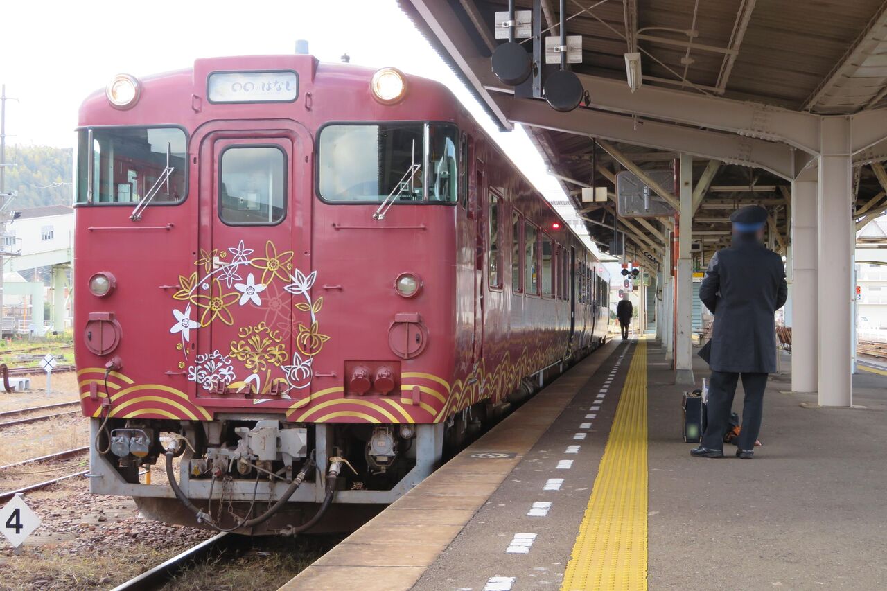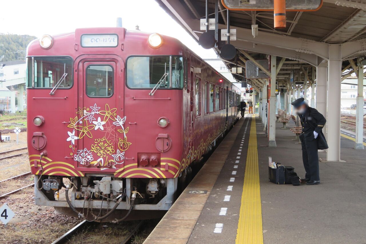 14時53分発の列車は運転停車するため、この駅から 仙崎駅へ向かう○○のはなしに乗車することはできません。