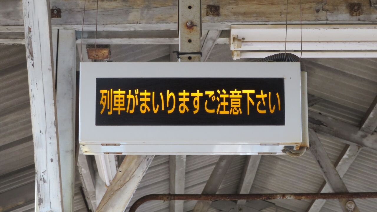 長門市駅の改札口には、小型の発車標が設置されています。