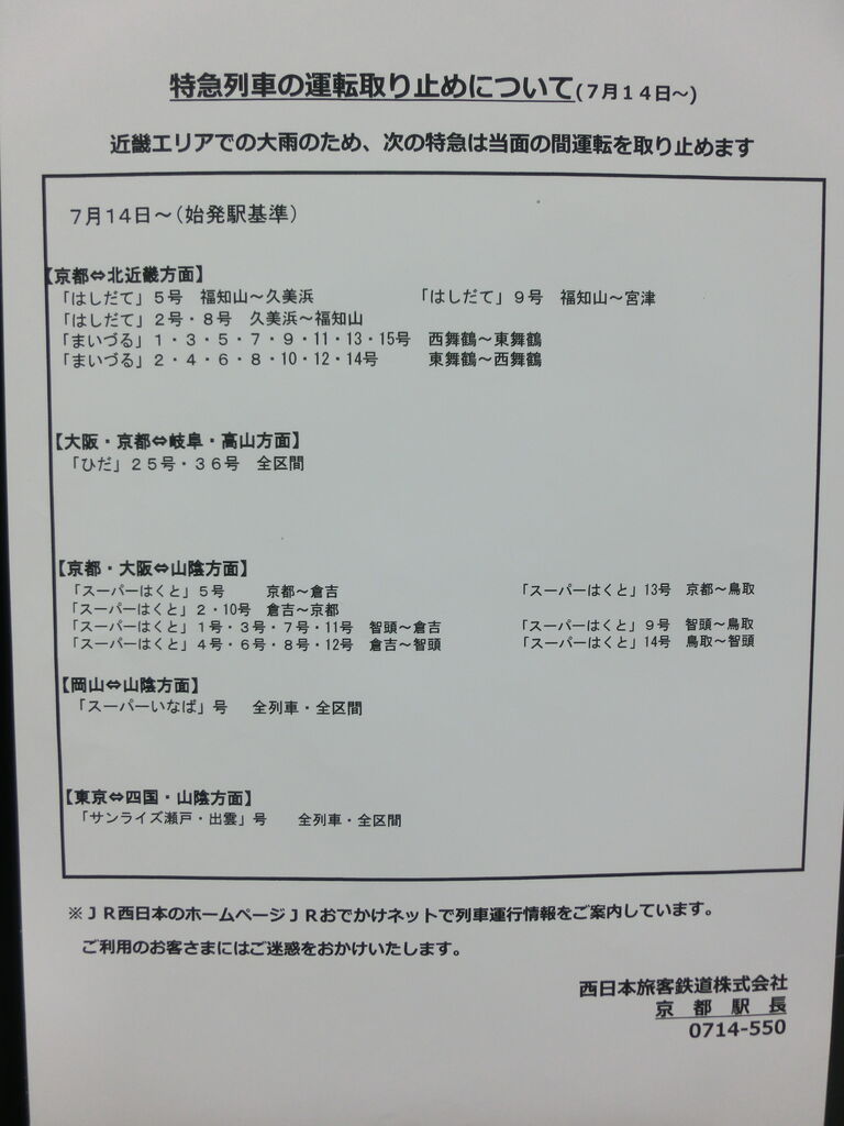 綾部~西舞鶴駅間は7月14日に、西舞鶴~東舞鶴駅間は7月19日に運転を再開しています。