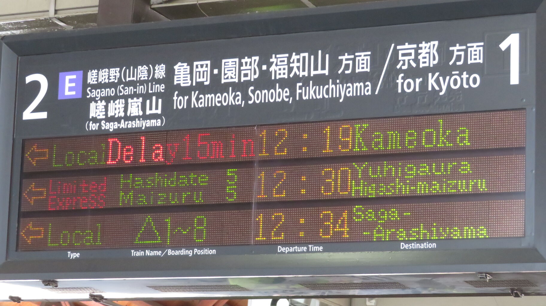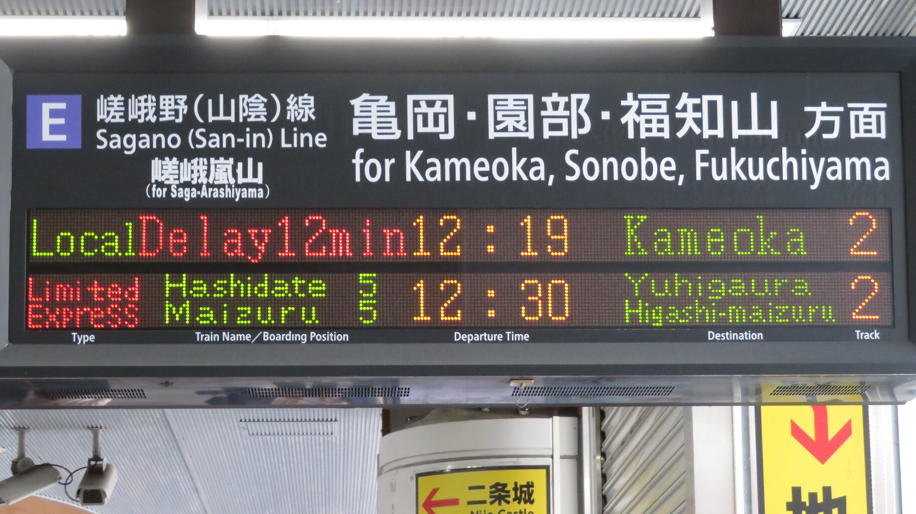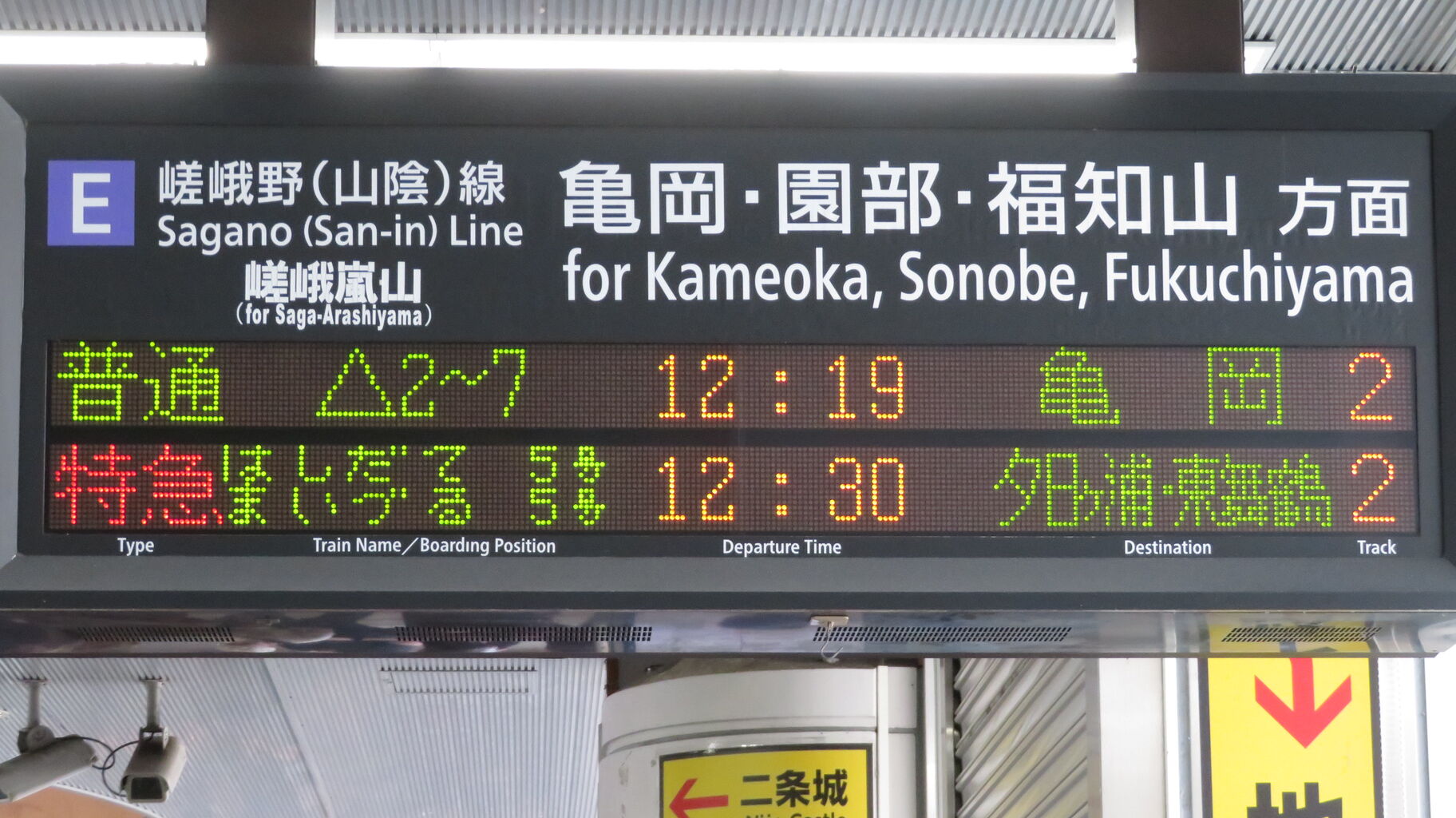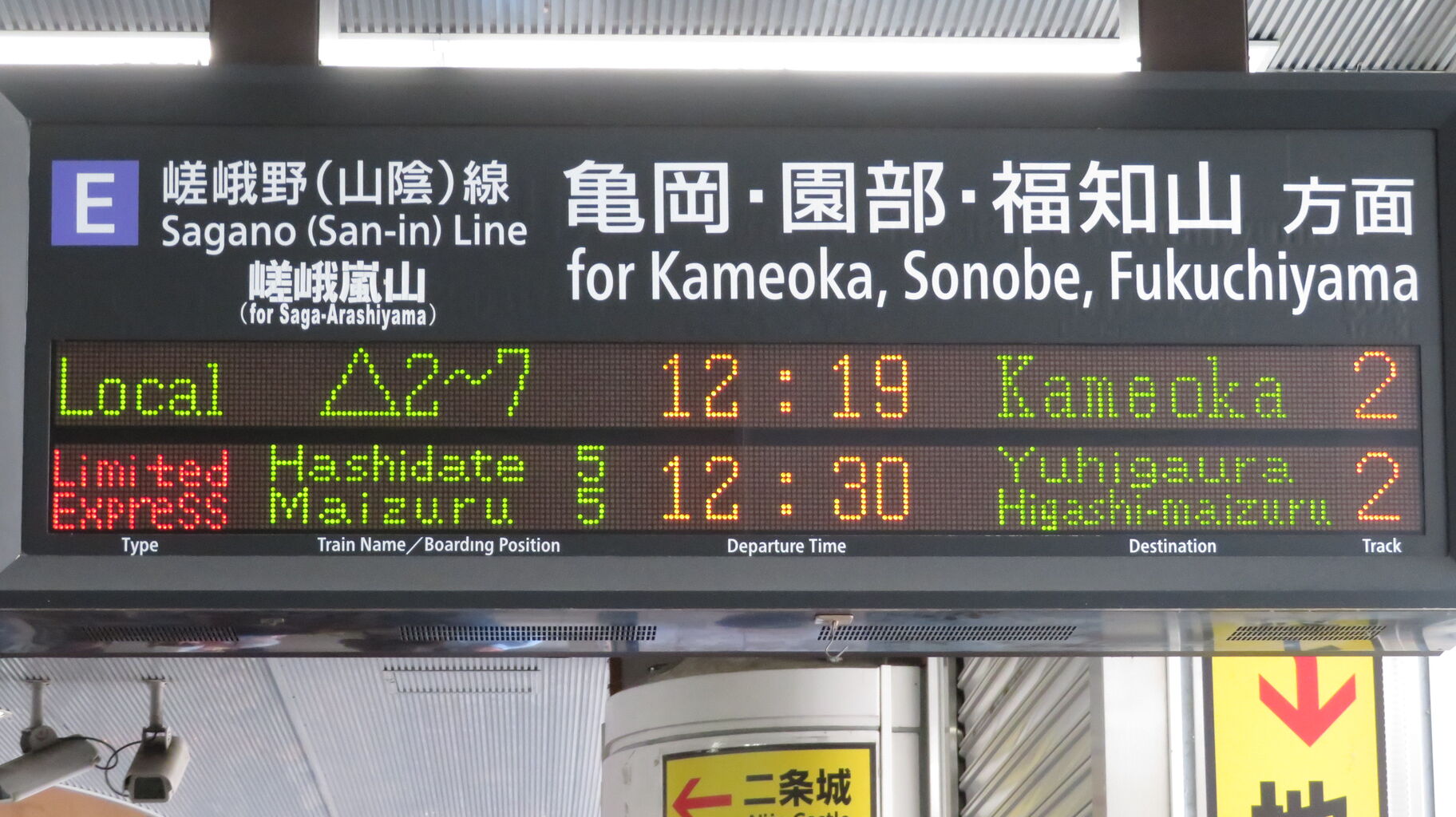 園部方面の電車が立て続けに発着すると、発車標に京都行きの電車が表示されないことも・・・。