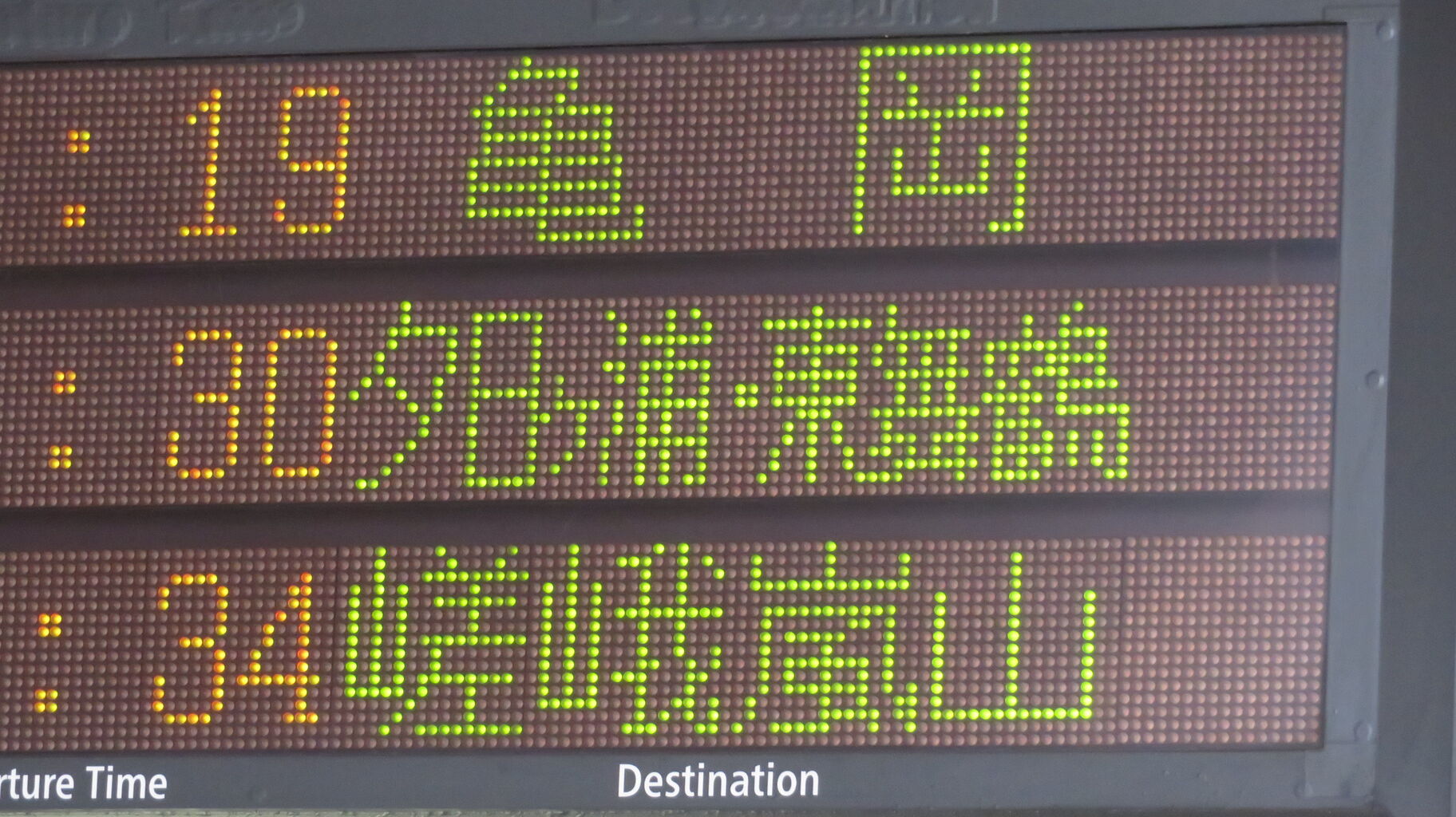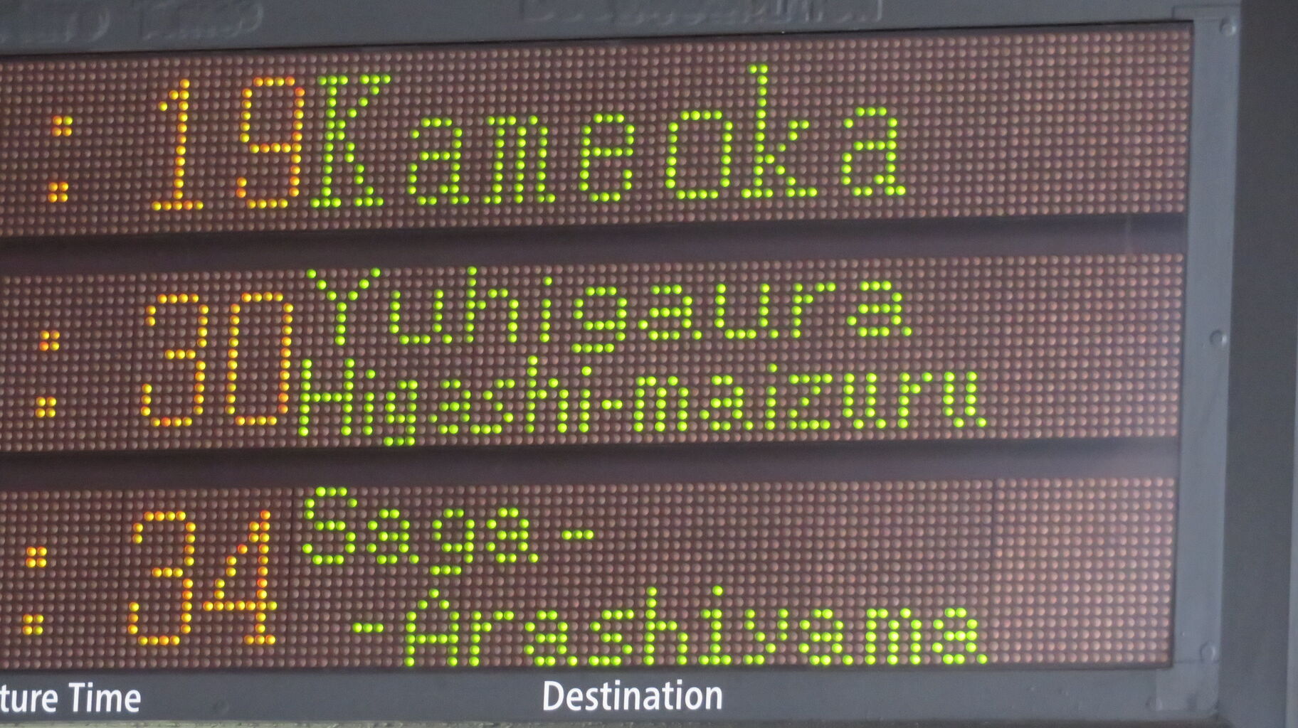 続いて、1・2番のりばに設置されている発車標を撮影。