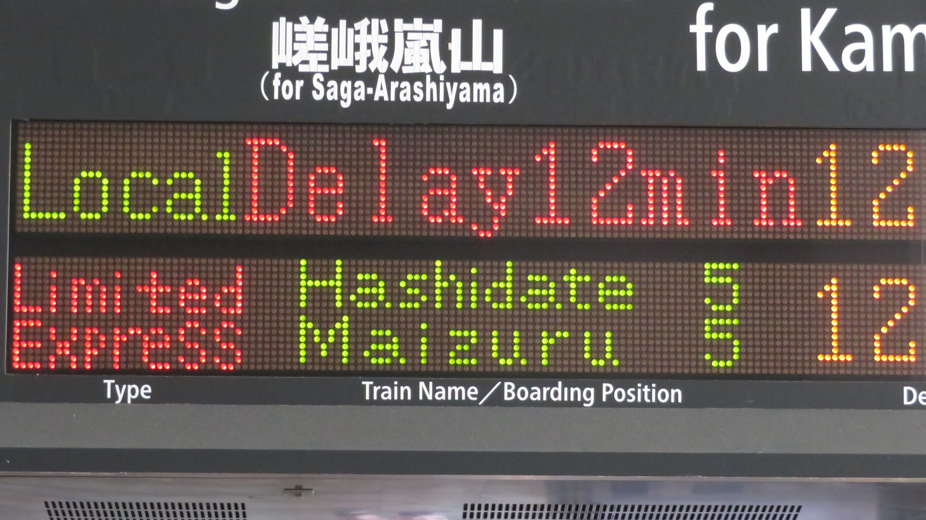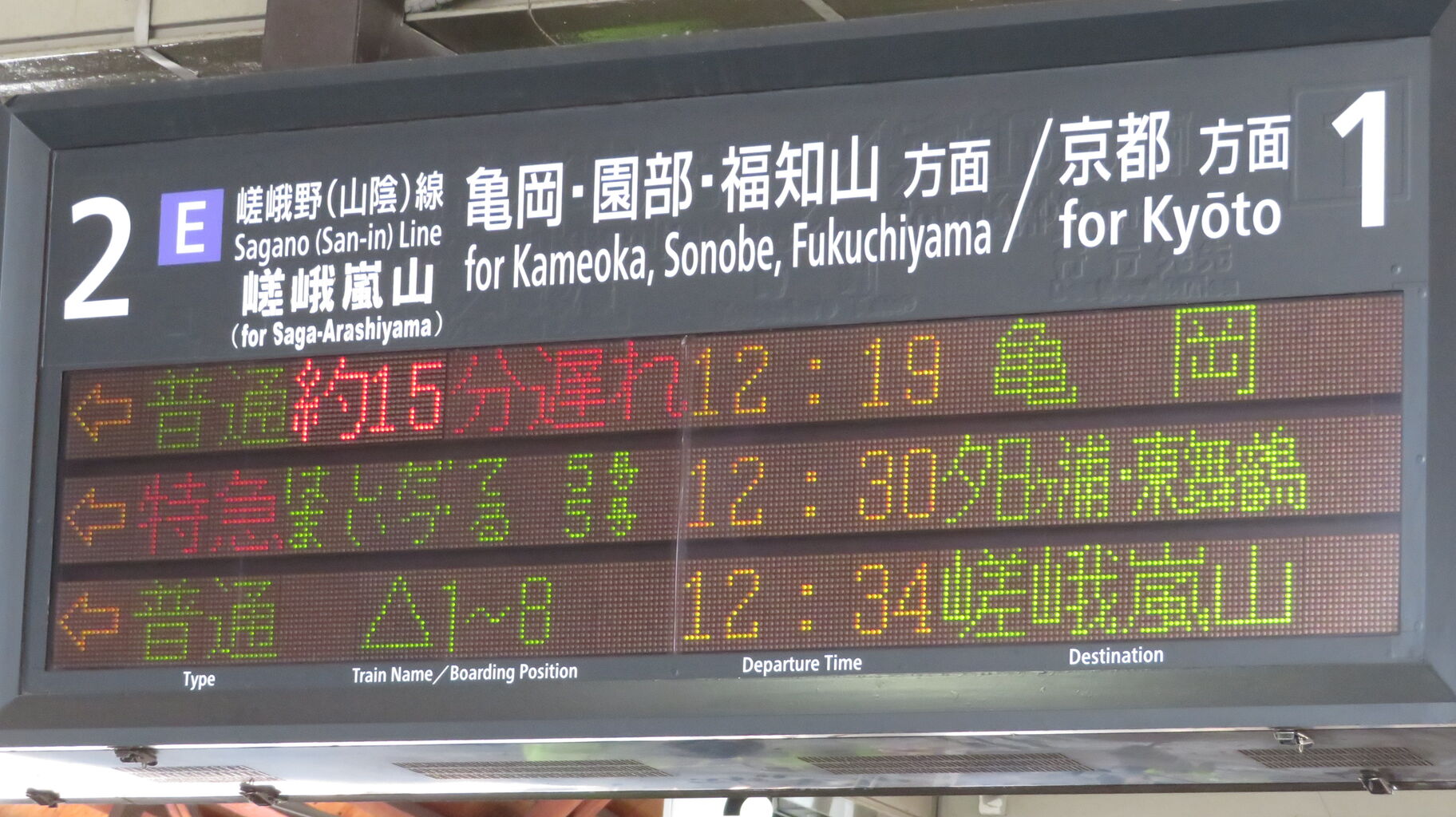 一番下の段には、嵯峨嵐山行きの表示が出ています。