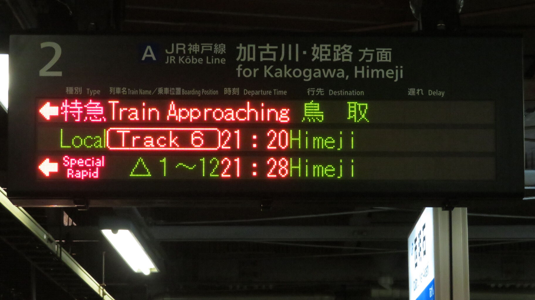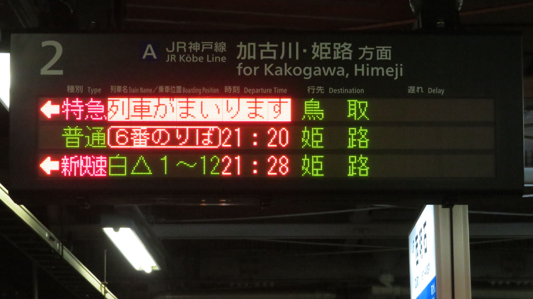 まずは、改札内跨線橋に設置されている発車標から。
