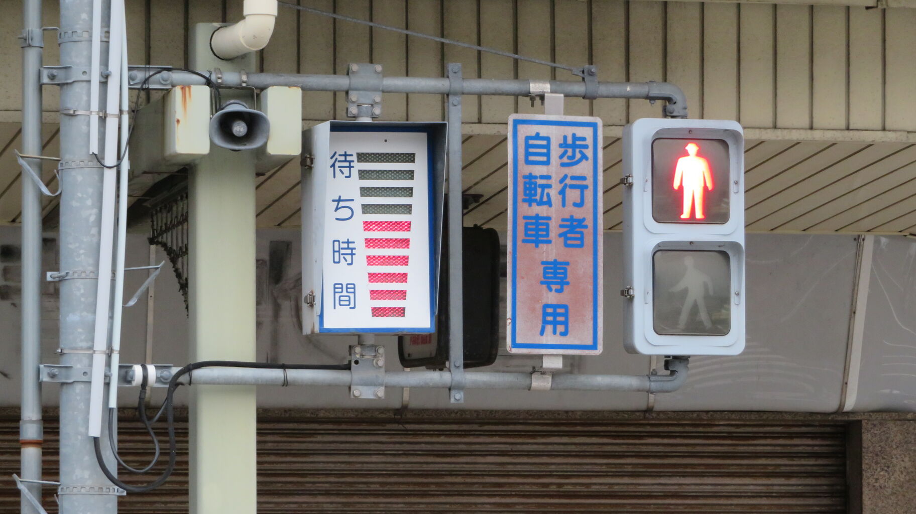 信号機はLED発光型の新しいものに更新されましたが、左側にある 古そうな待ち時間表示器は そのまま使われています。