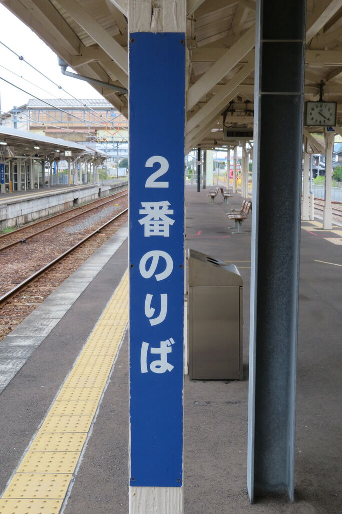 しかし、この駅では ホームの柱に 「○番のりば」 と書かれた縦長の看板が取り付けられていました。