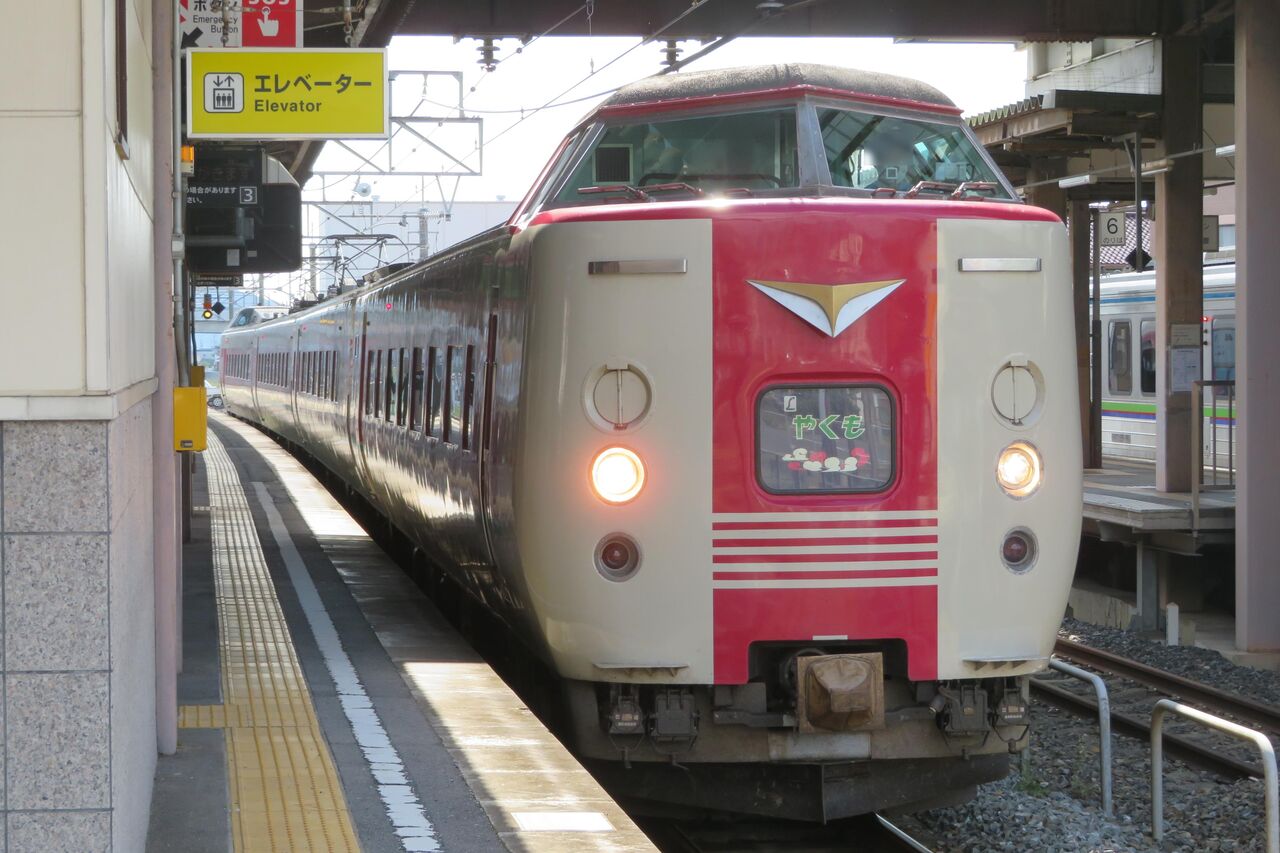 ※総社駅に停車中の特急 「やくも」。国鉄車両の381系です。(2021年10月撮影)