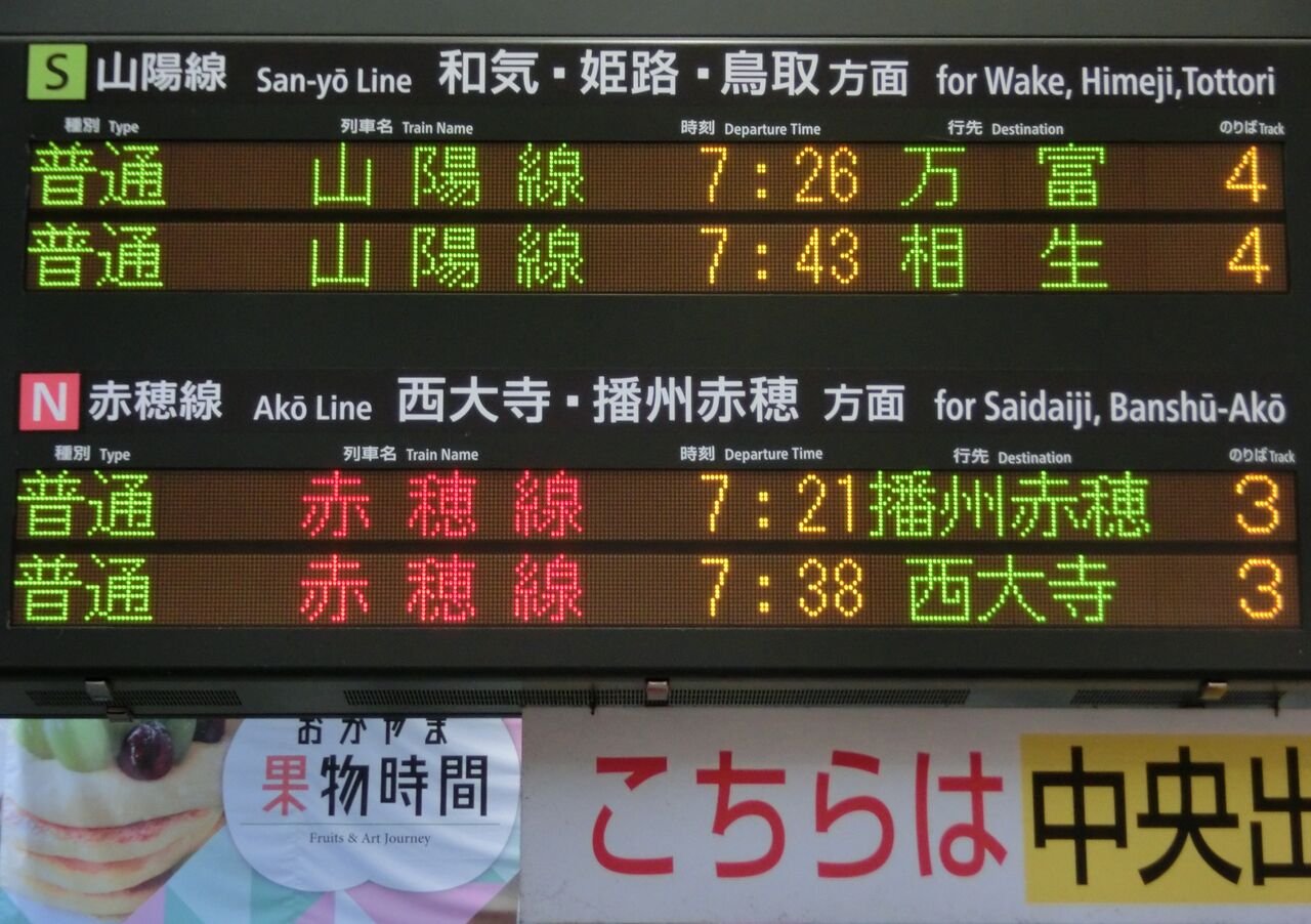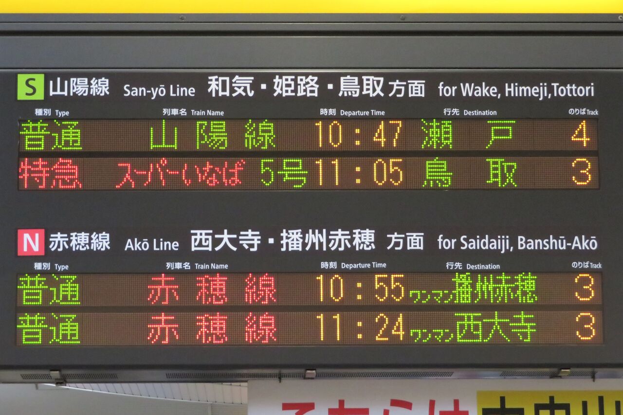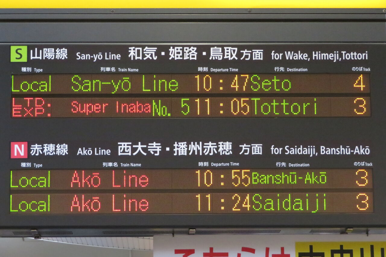 今回、2021年3月に岡山駅を訪れた際、そんな西大寺行きの表示を撮影したので、このブログで簡単に紹介しておきたいと思います。