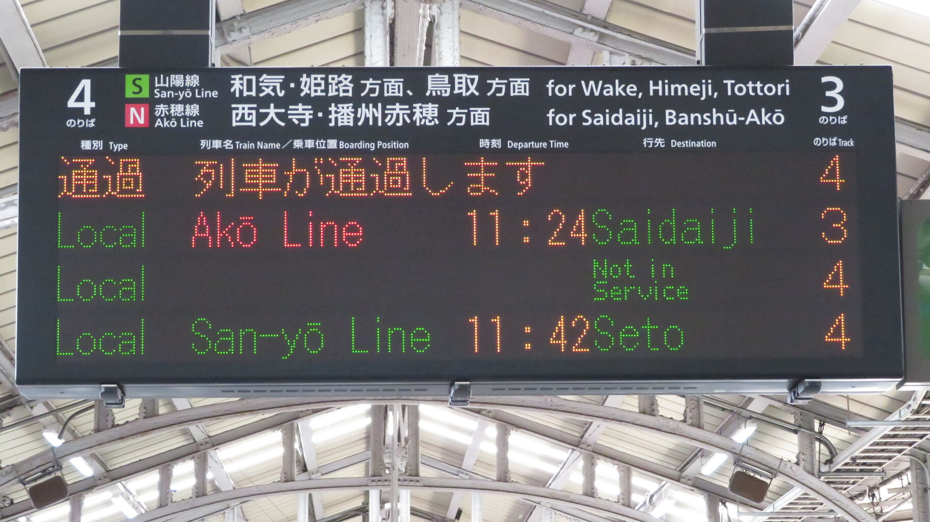しかし、岡山・福山地区では、2021年9月現在も 「Train Approaching」 表示が出ませんでした。