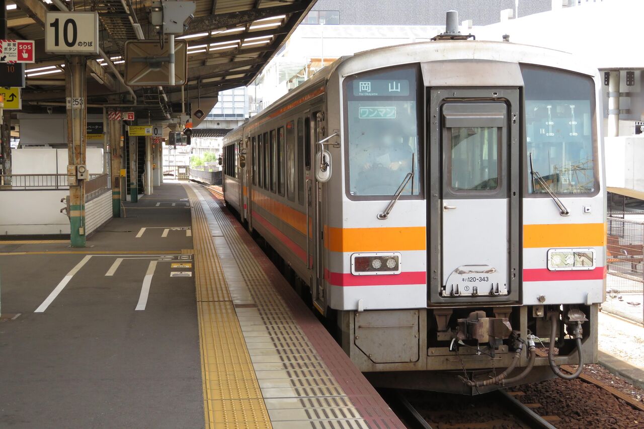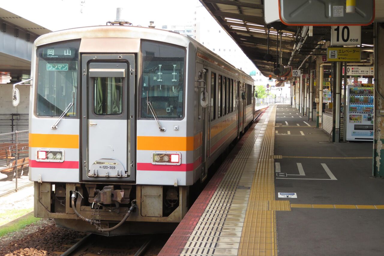 以上、岡山駅の10番のりばに到着したキハ120形を紹介しました。