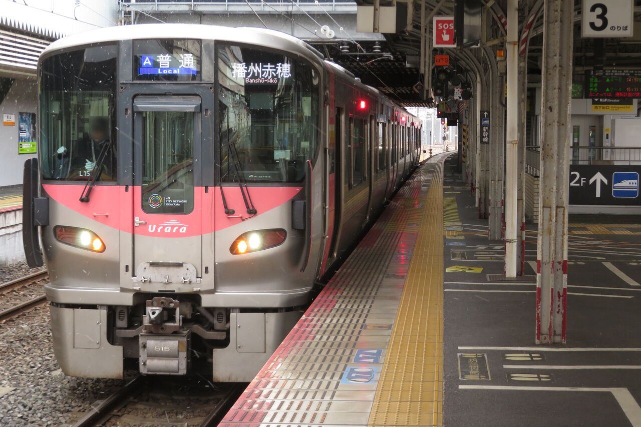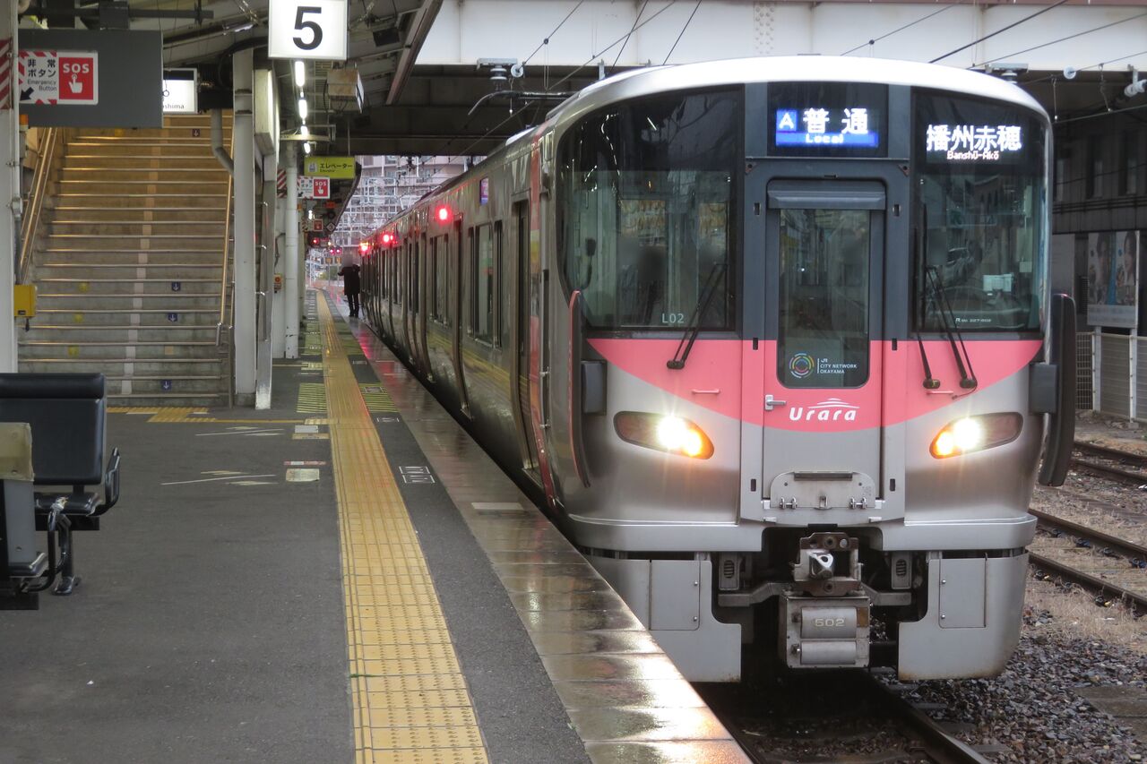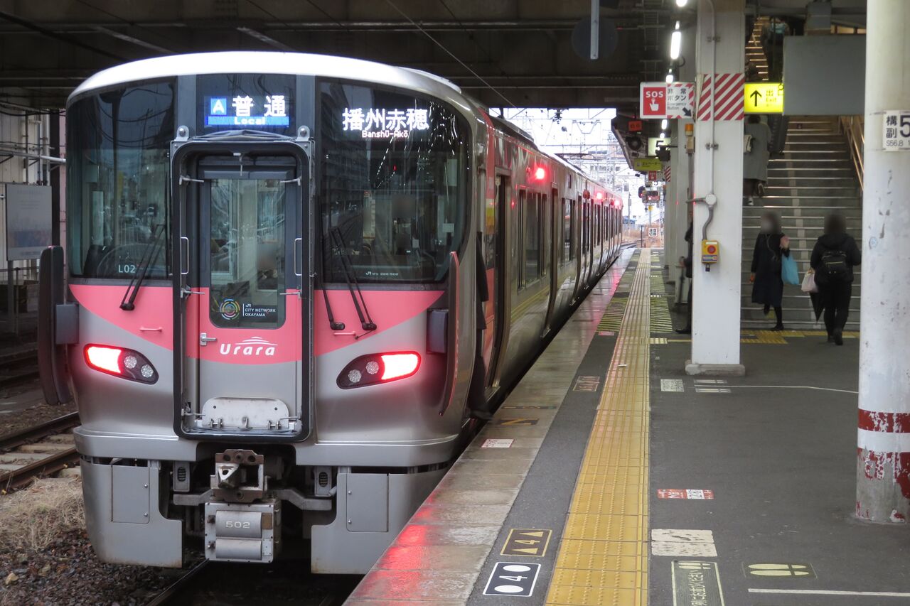 2026年1月に岡山駅と倉敷駅を訪れた際、227系の普通 「播州赤穂行き」 を撮影しました。