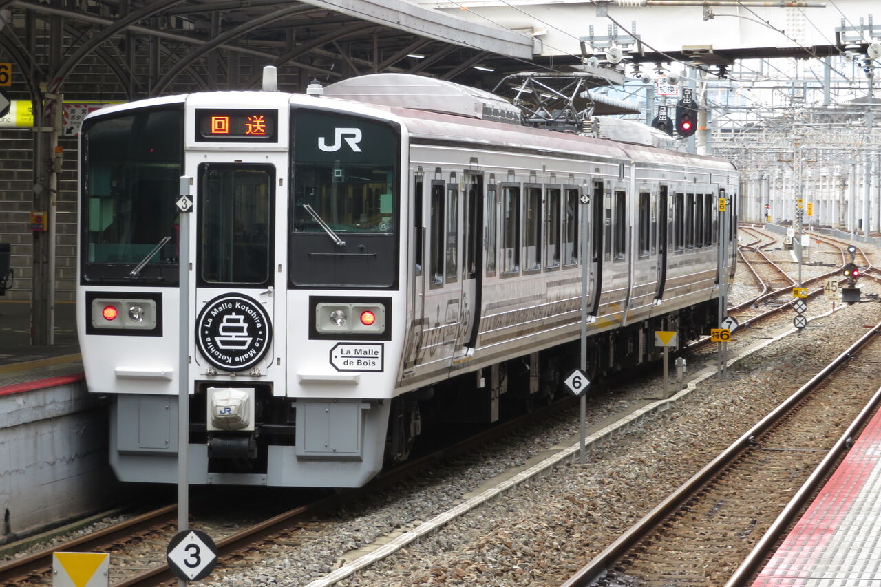 その後、駅東側の引き上げ線に入って折り返し、10時11分発の 「ラ・マルことひら」 琴平行きとして5番のりばに入線することになります。