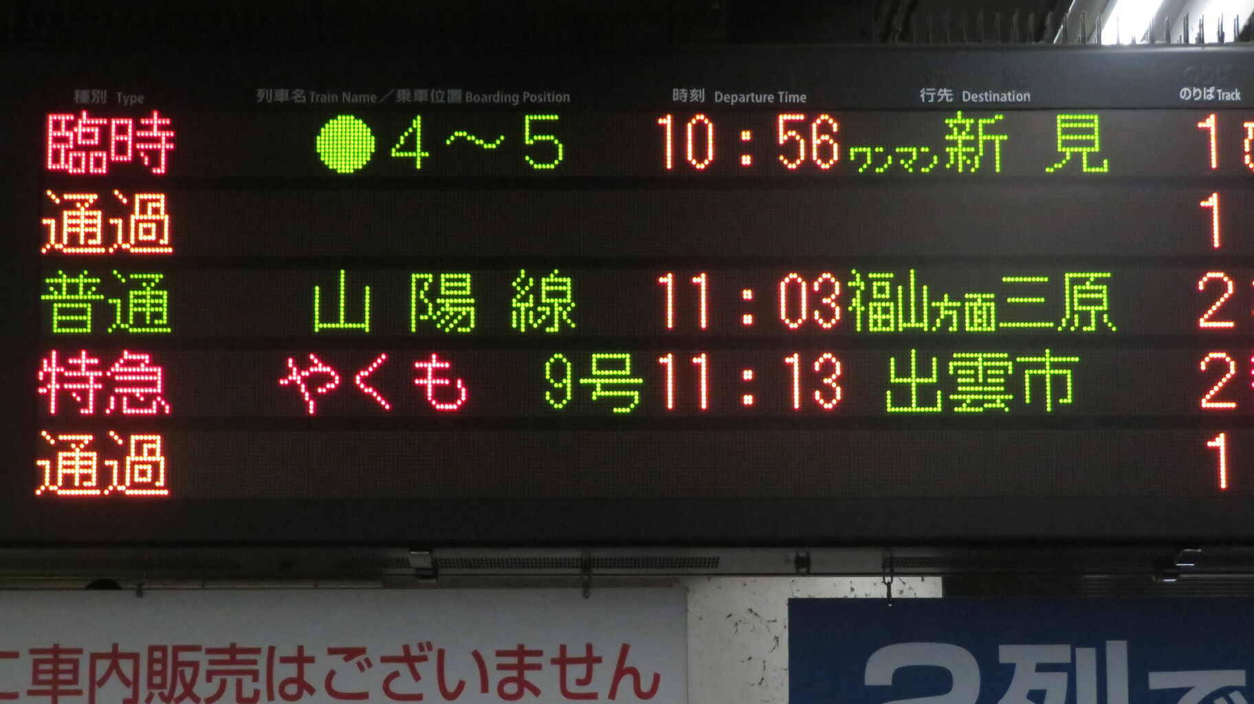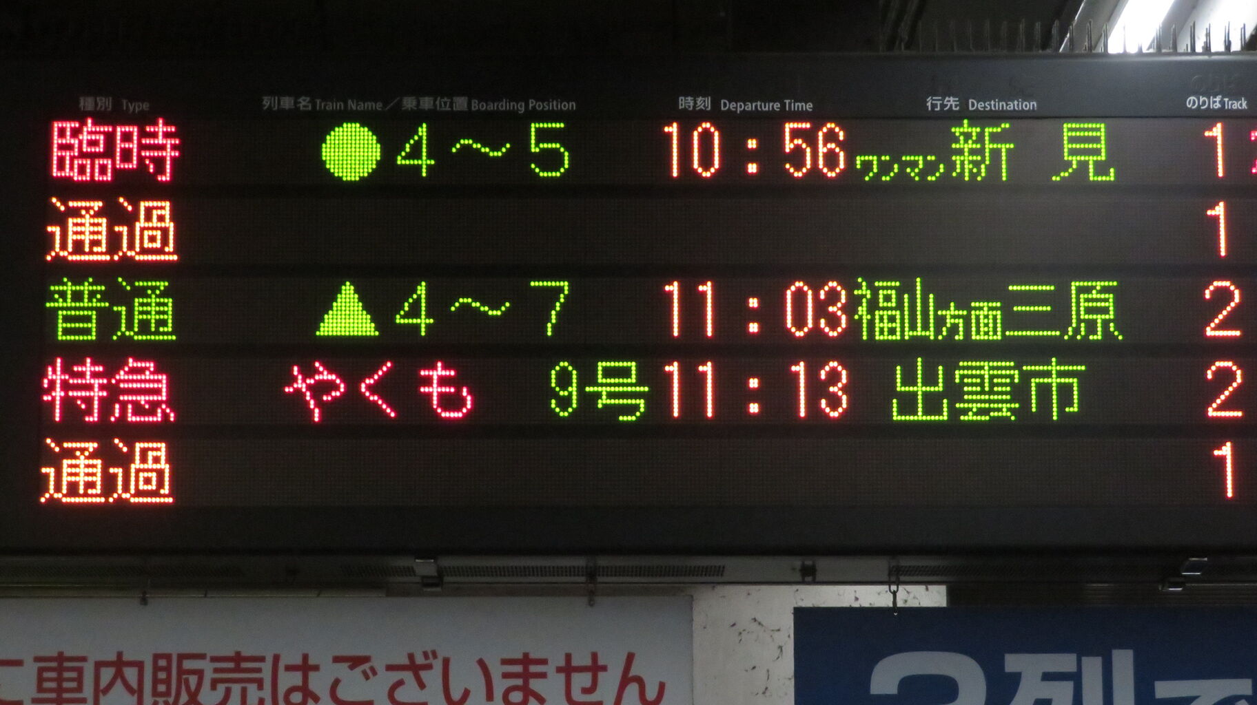 一番下の段に表示されている 臨時列車の新見行きが、○○のはなしです。