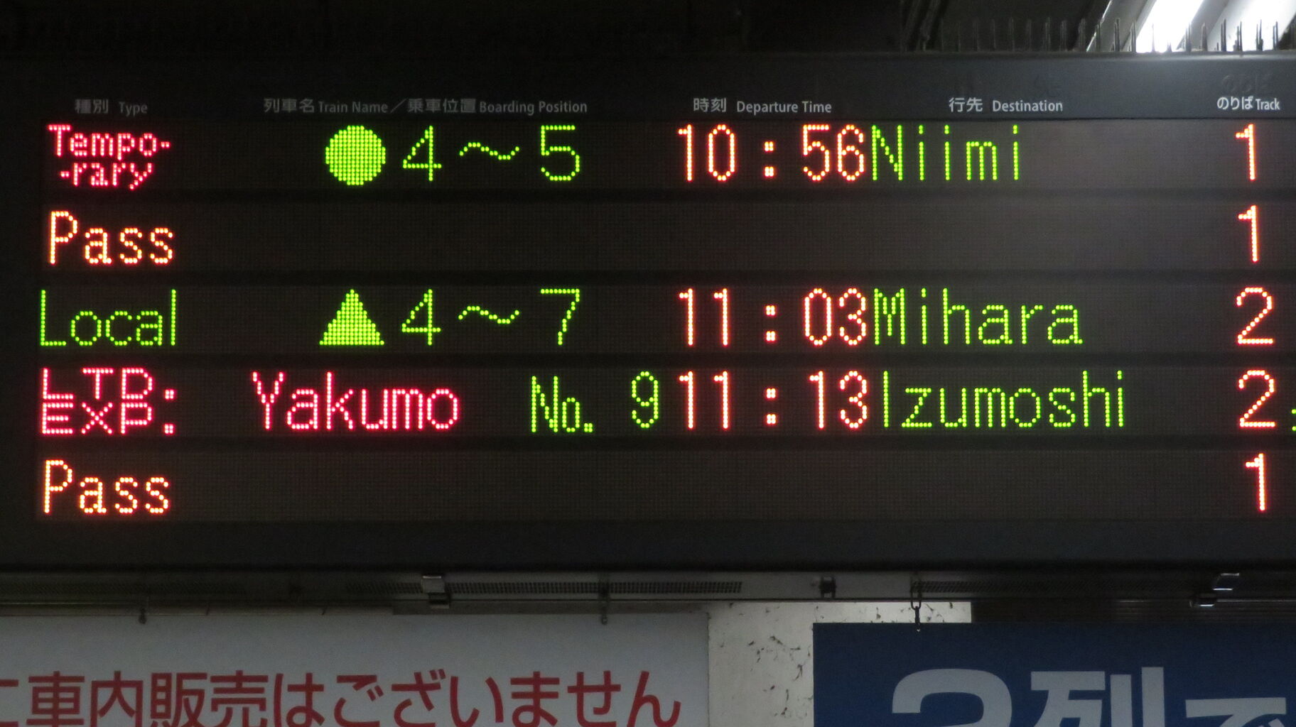 列車名 / 乗車位置欄には、路線名(または列車名)と乗車位置が交互に表示されるのですが、○○のはなしは 乗車位置のみ表示されていました。