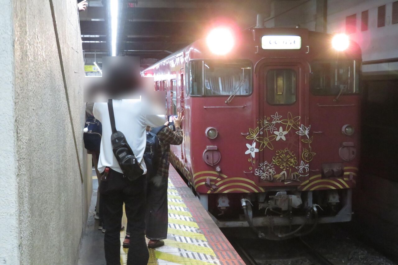 1番のりばに到着した観光列車 「○○のはなし」 新見行きを撮影。
