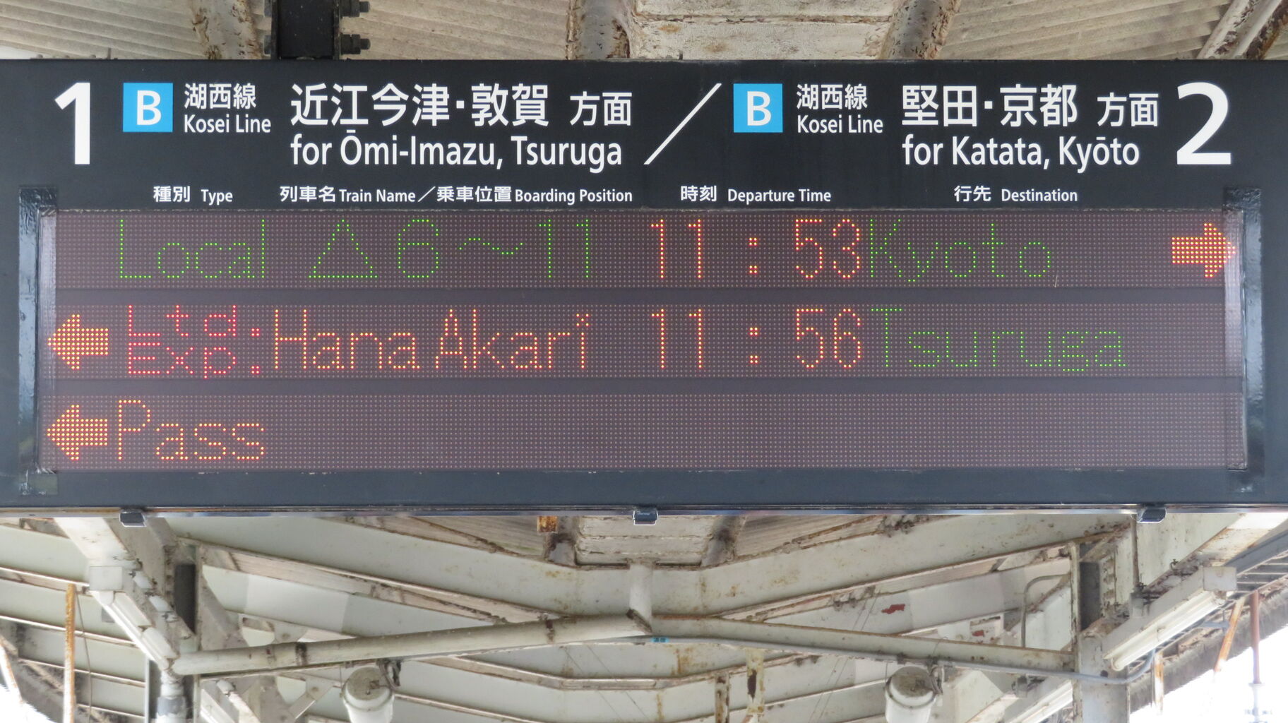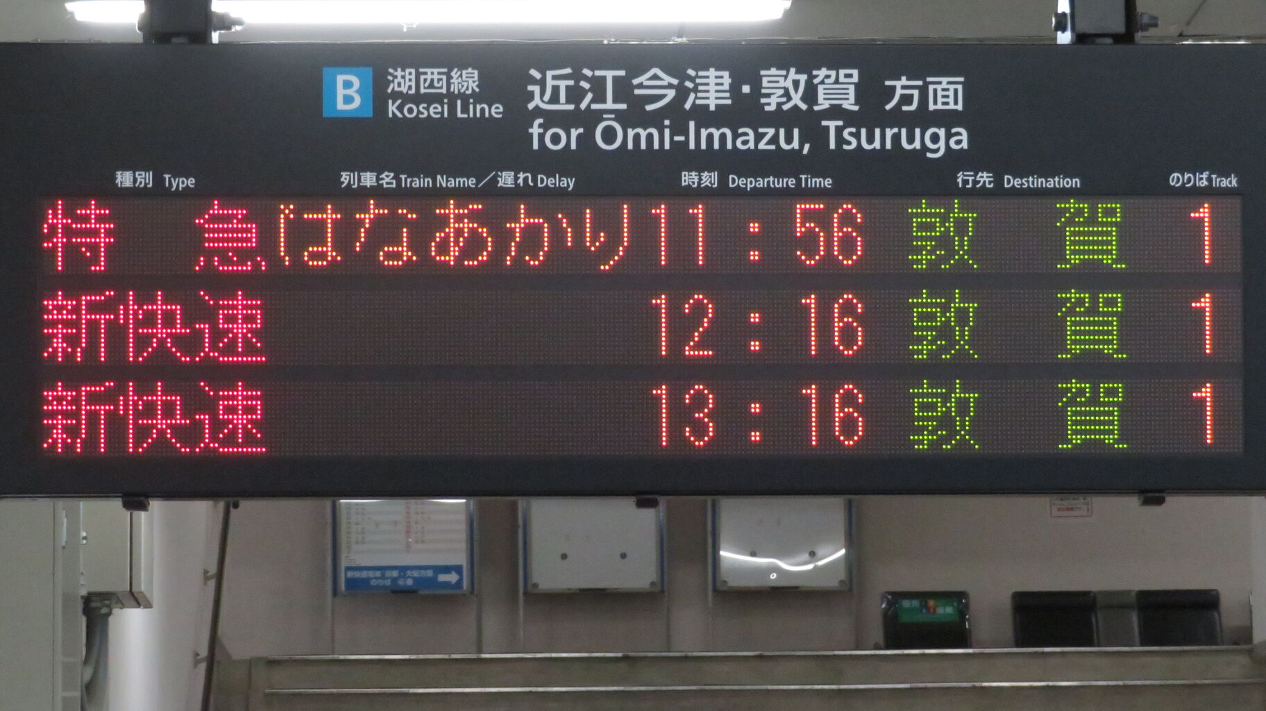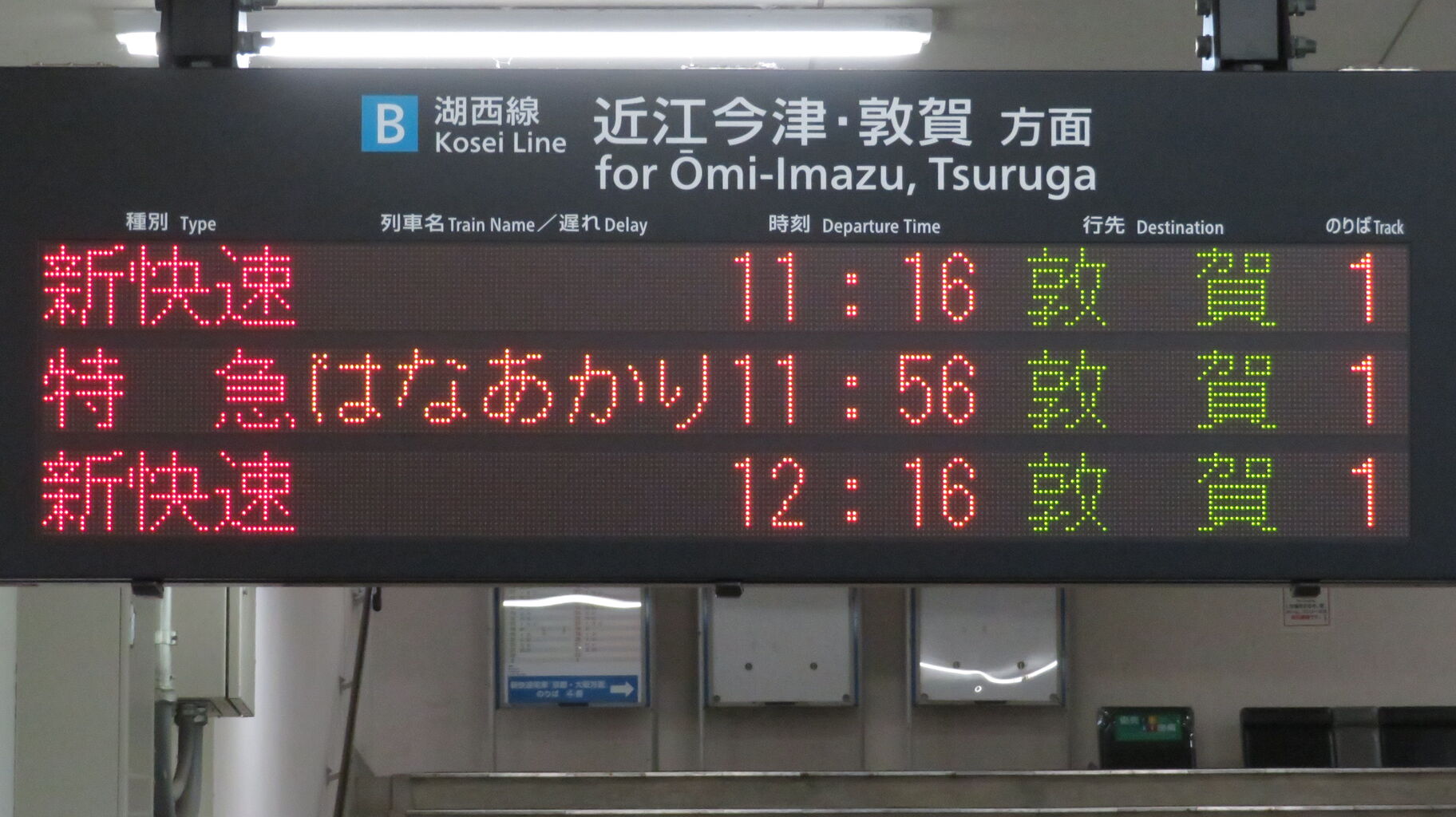 真ん中の段に、「はなあかり」 敦賀行きが表示されていました。