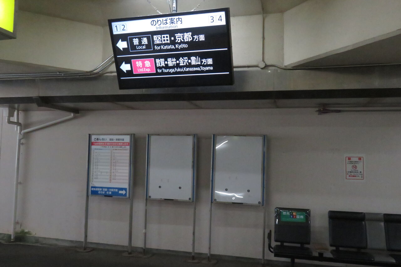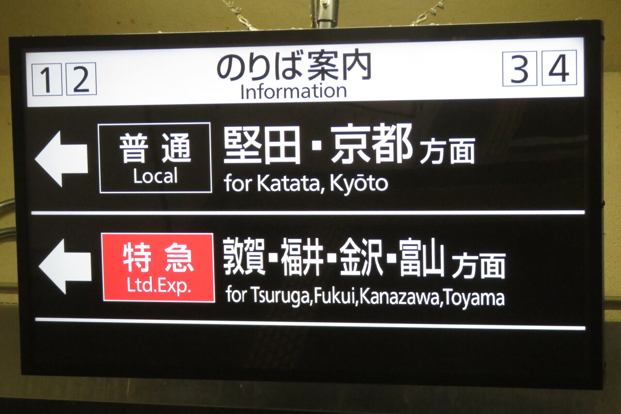 はなあかりは特急なので、「敦賀・福井・金沢・富山方面」 と表示されていました。