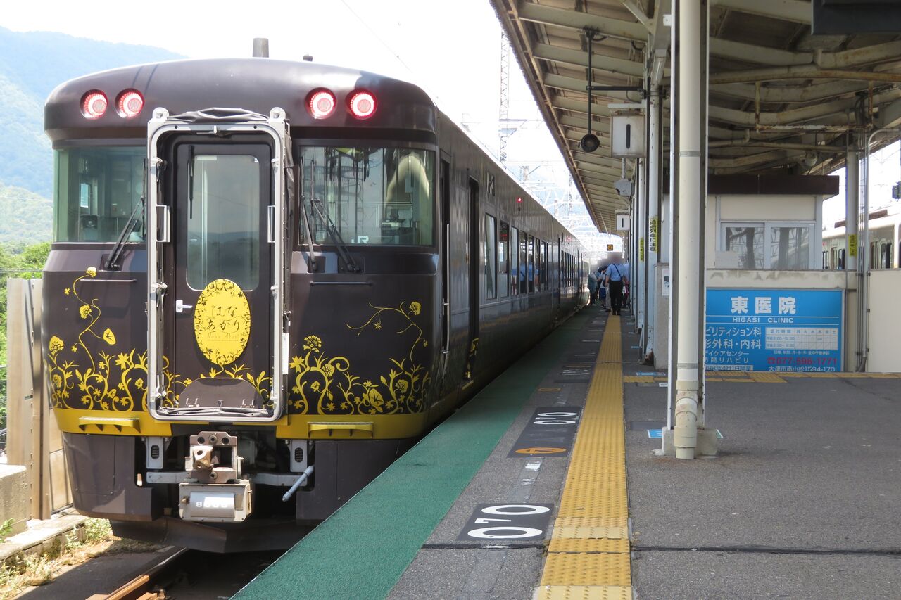 今回は、2025年8月に近江舞子駅で撮影した観光列車 「はなあかり」 敦賀行きをご紹介。