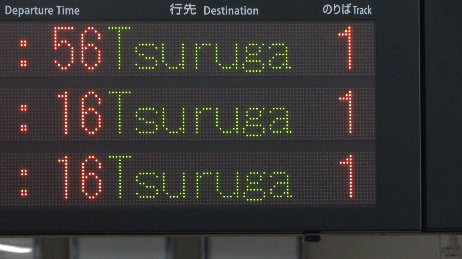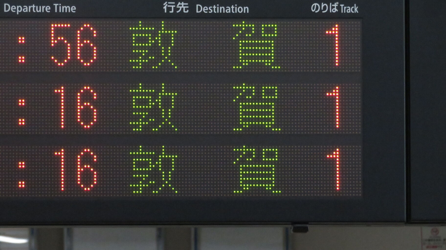 ホームへ上がって、1・2番のりばに設置されている発車標を撮影。
