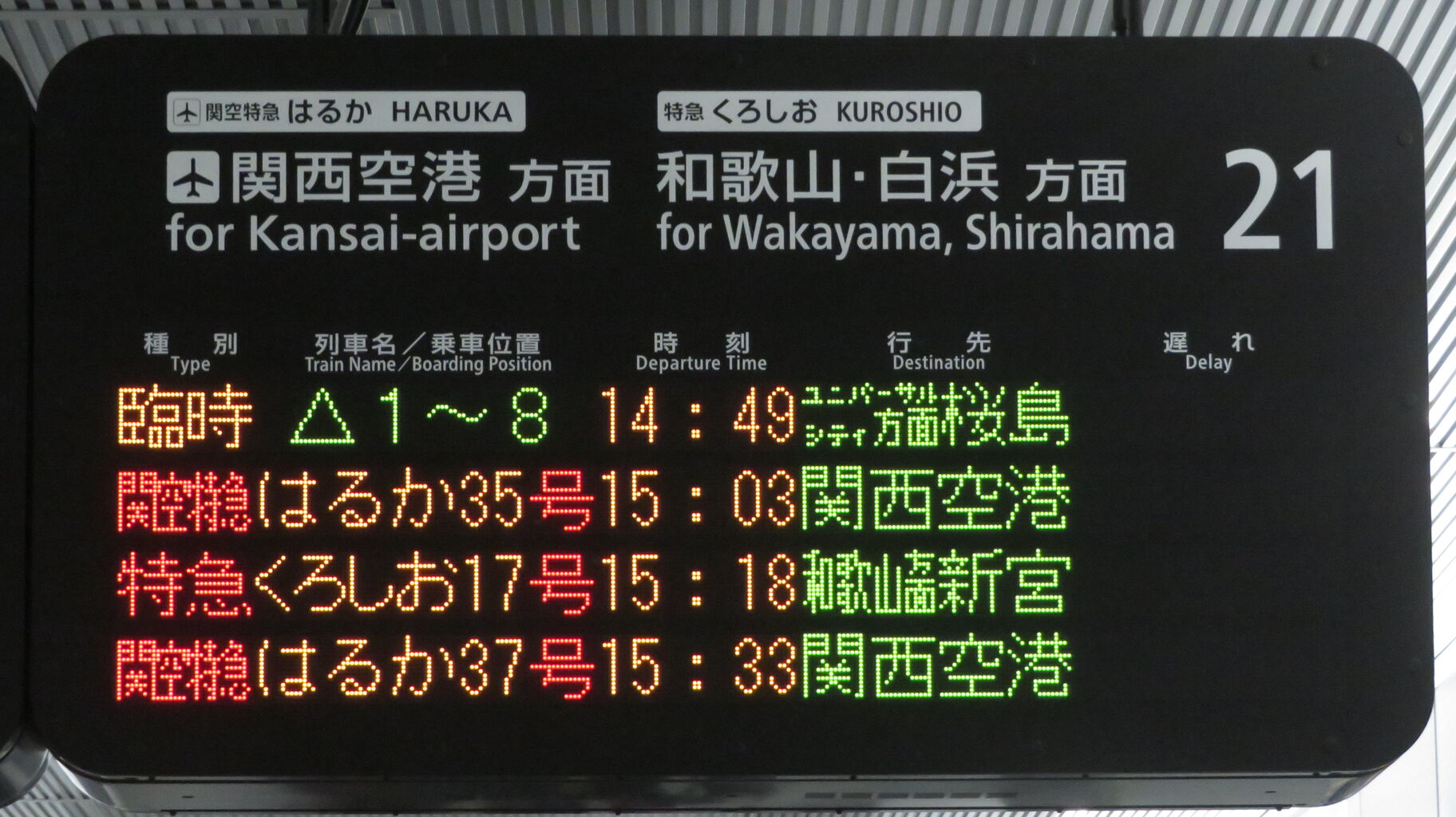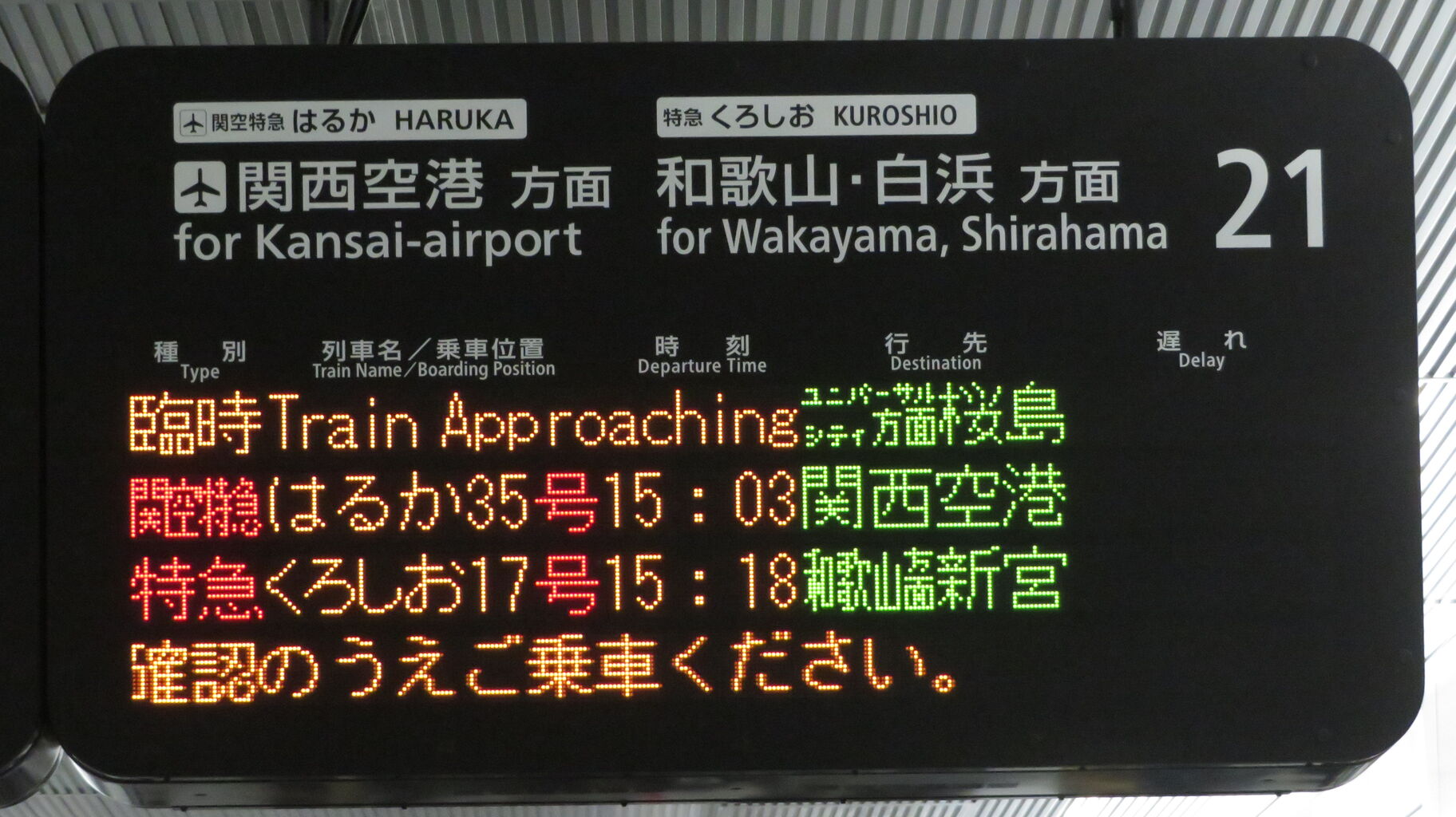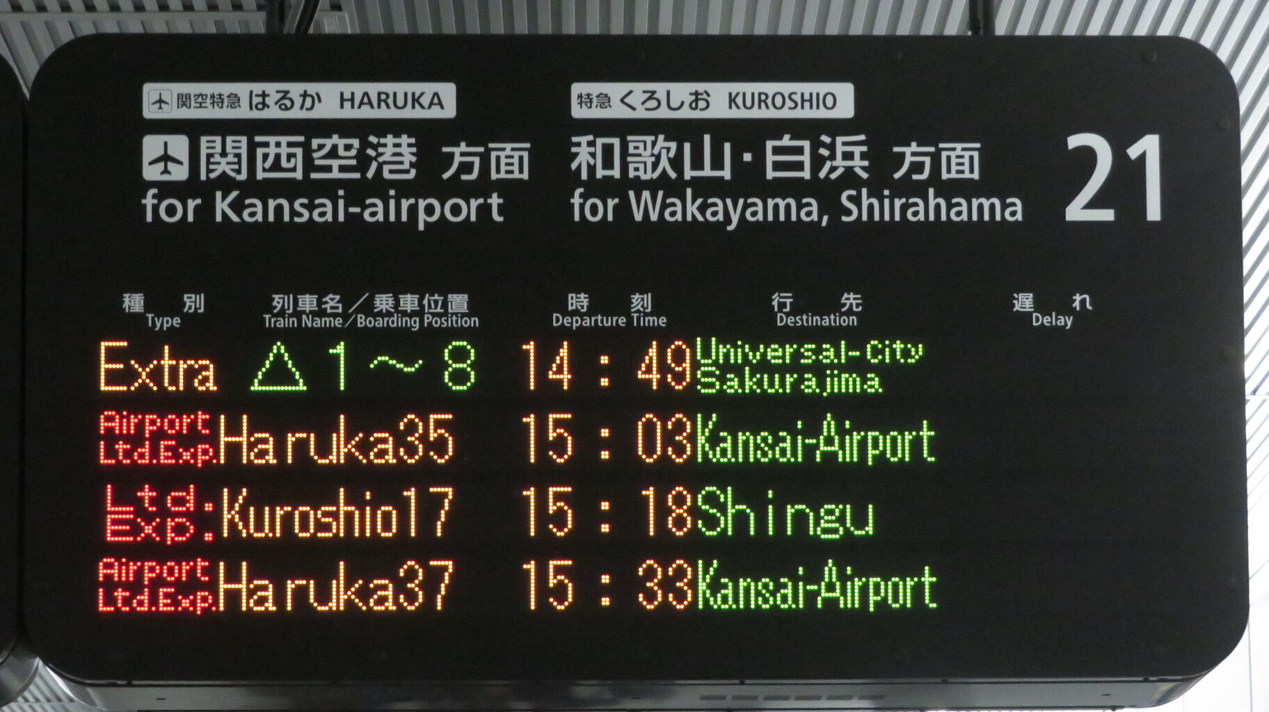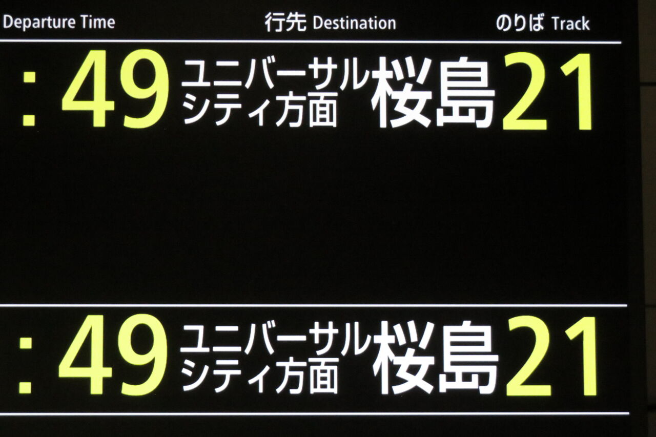 ユニバーサルシティ方面 桜島行きの表示が、新大阪駅のLCD発車標と異なります。
