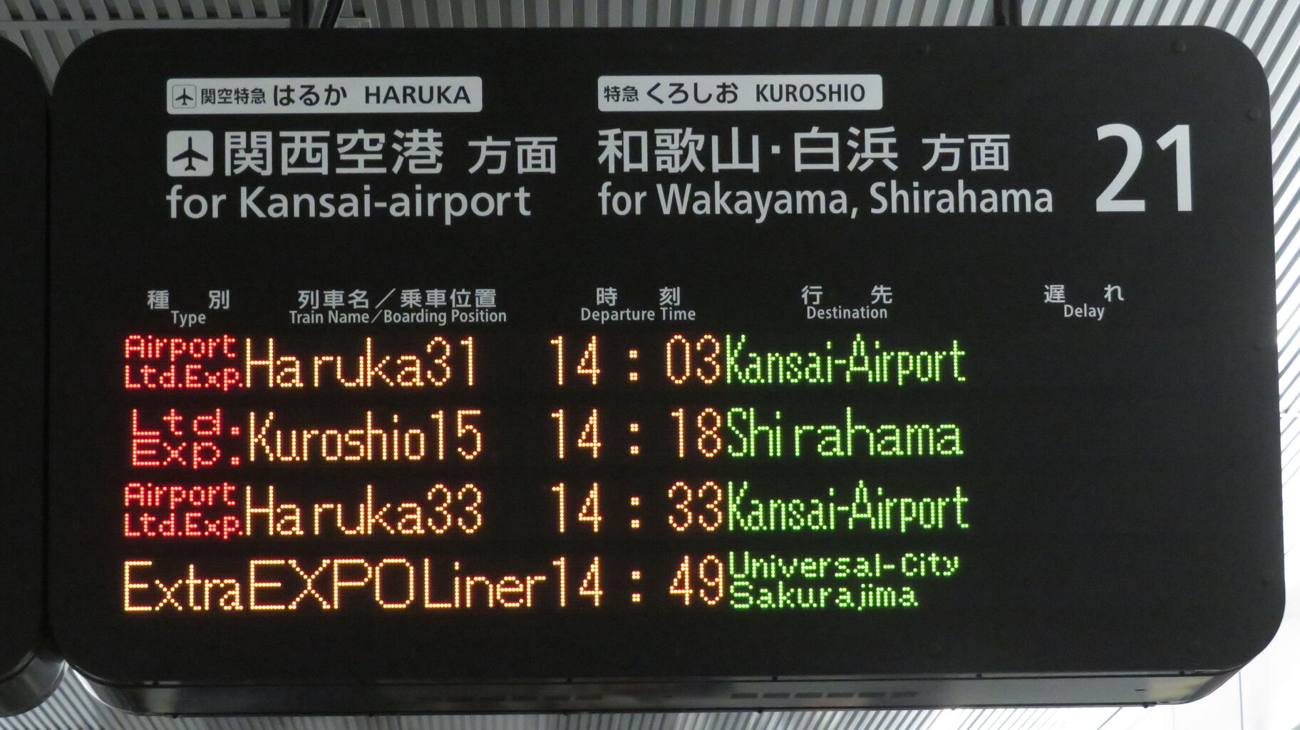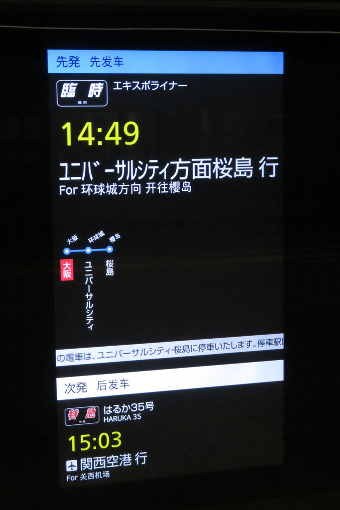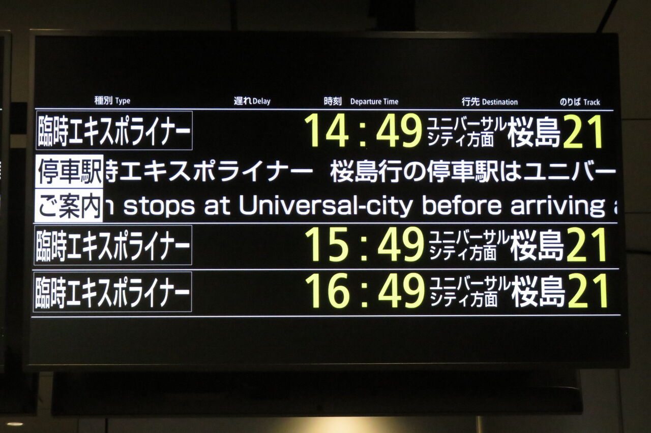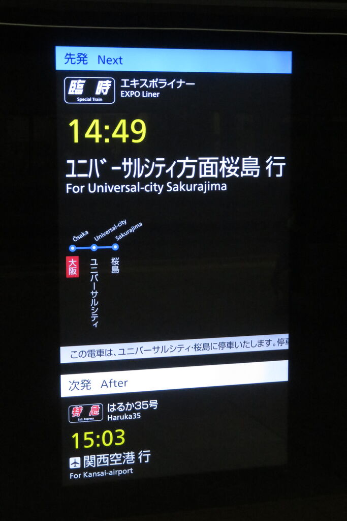 以上、大阪駅の地下ホームで撮影した臨時列車 「エキスポライナー」 桜島行きの表示を紹介しました。