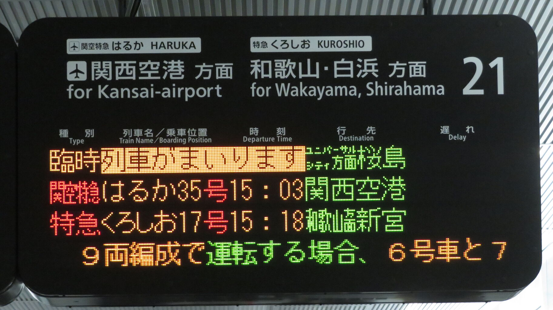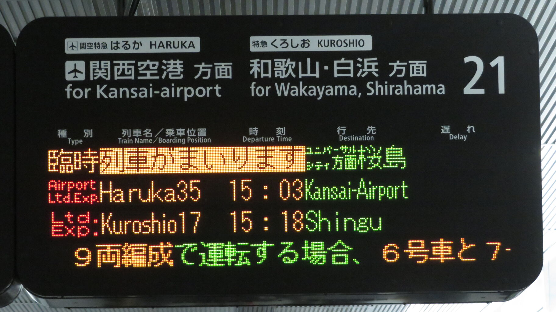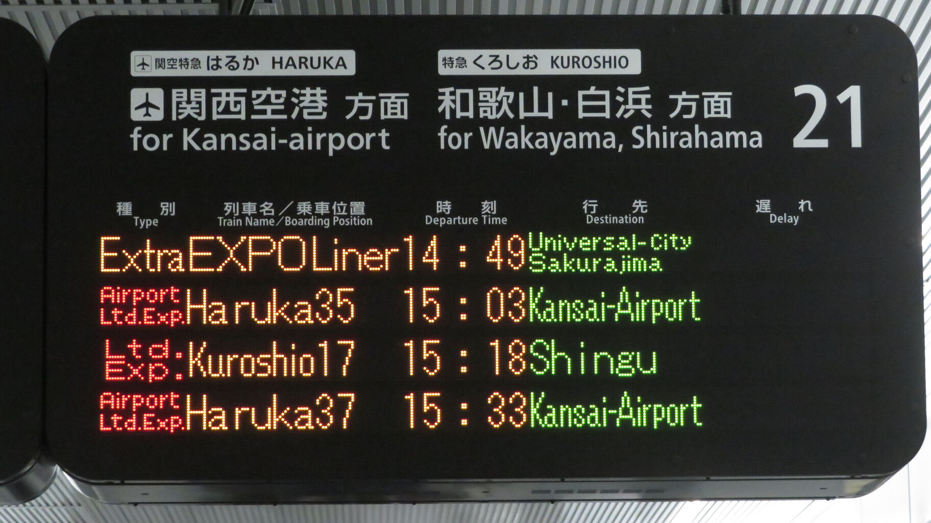 以上、大阪駅の地下ホームで撮影した臨時列車 「エキスポライナー」 桜島行きの表示を紹介しました。