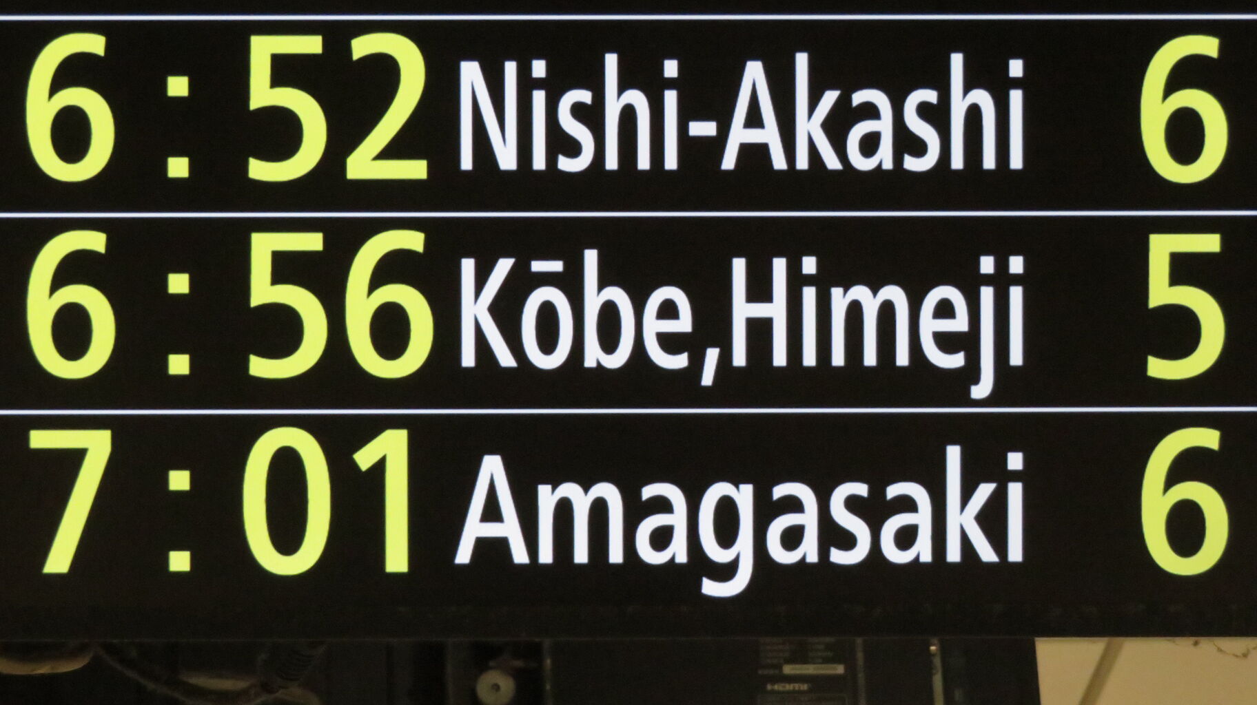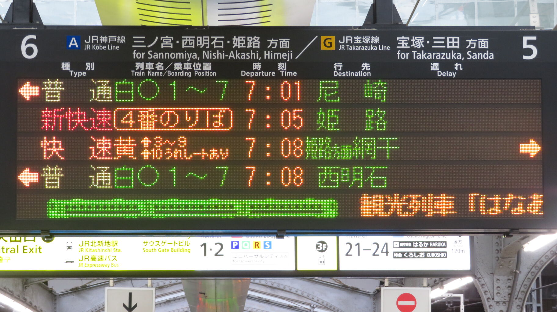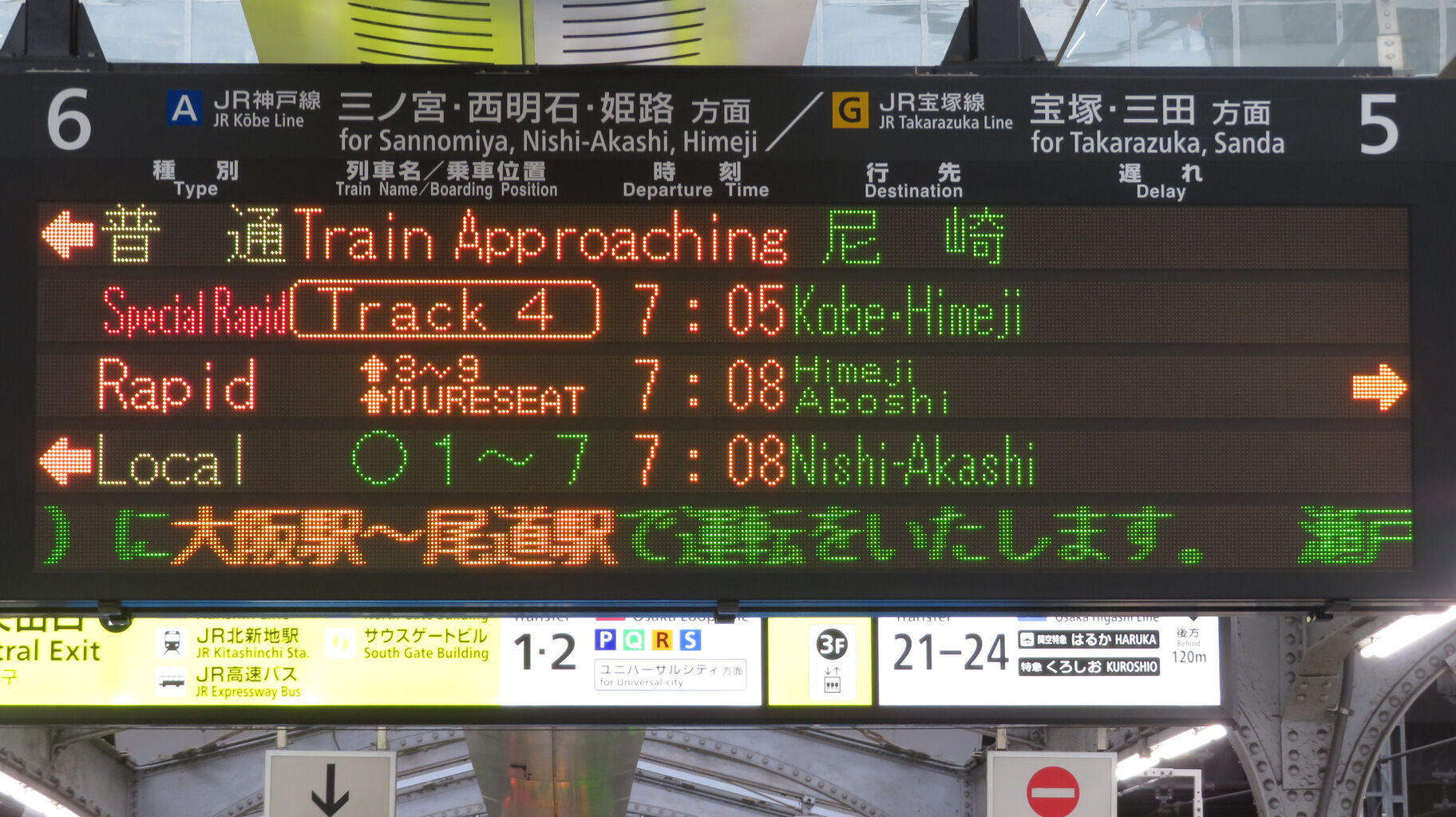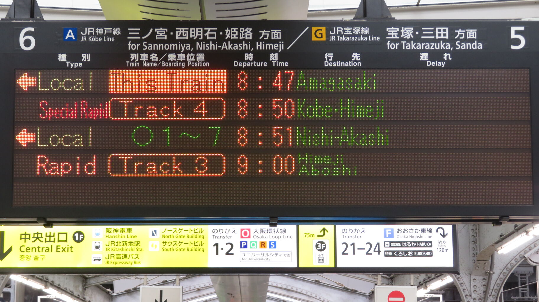 しかしその後、大阪駅のディスプレイ発車標に変化があったので、2025年4月に改めて撮影しました。