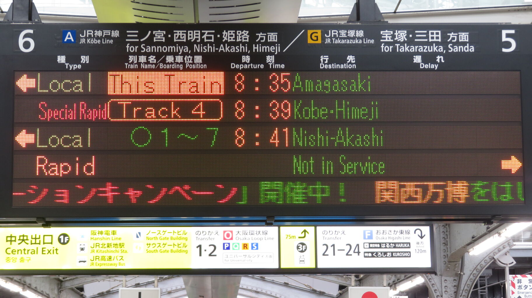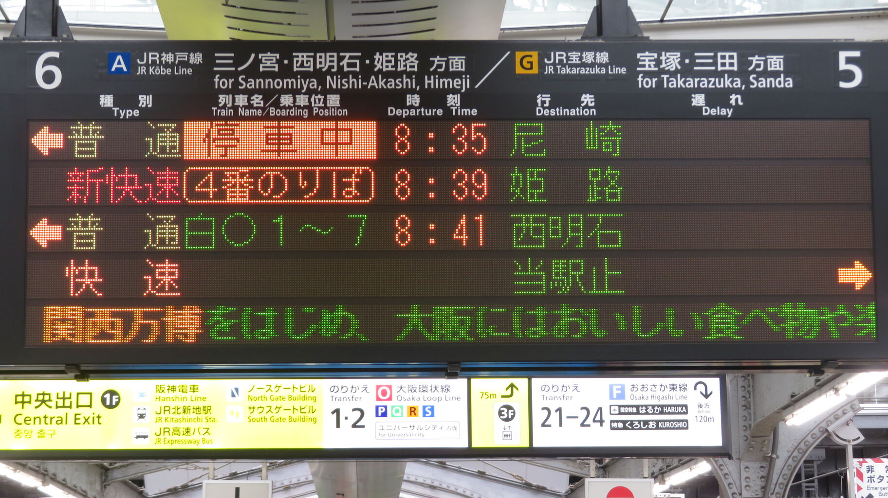 こちらは、中央口にあるフルカラーLED発車標です。