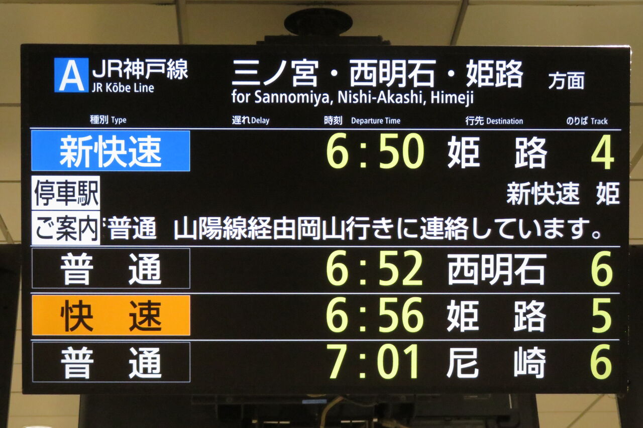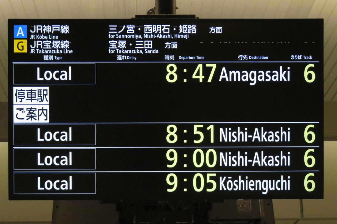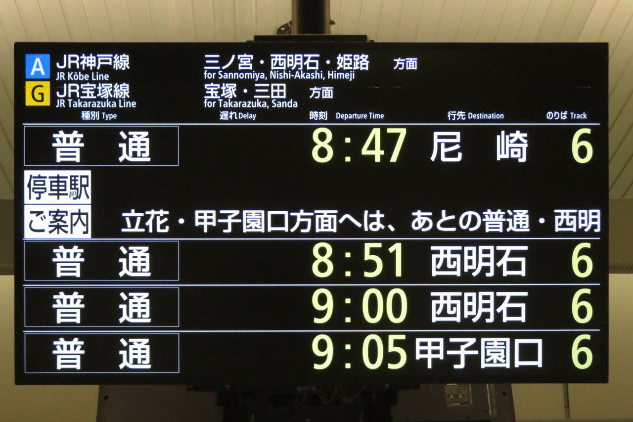 一番下の段には、普通 「甲子園口行き」 が表示されています。
