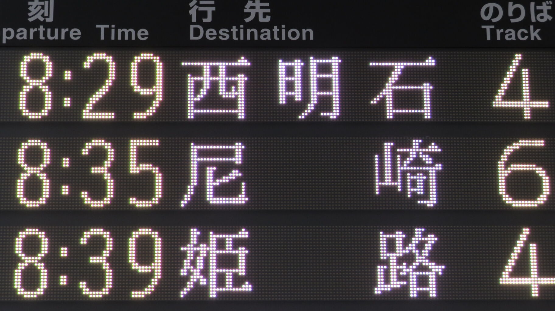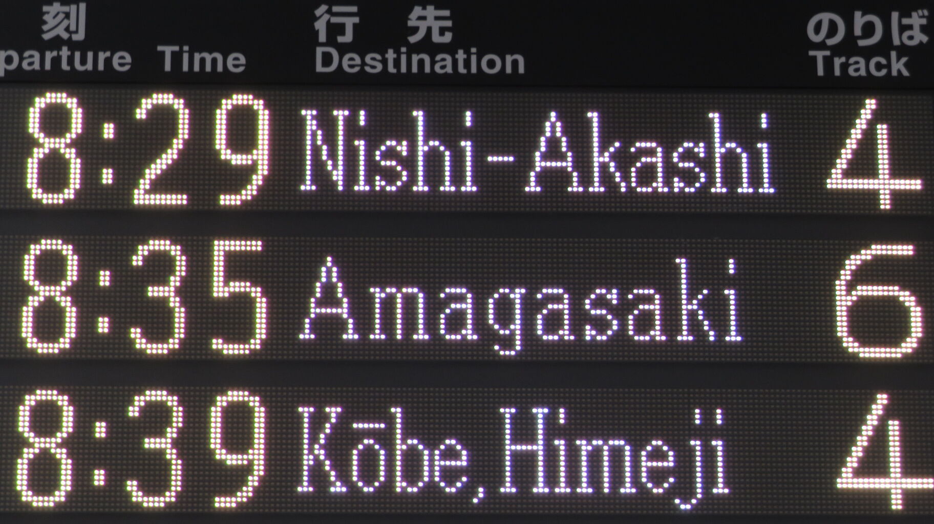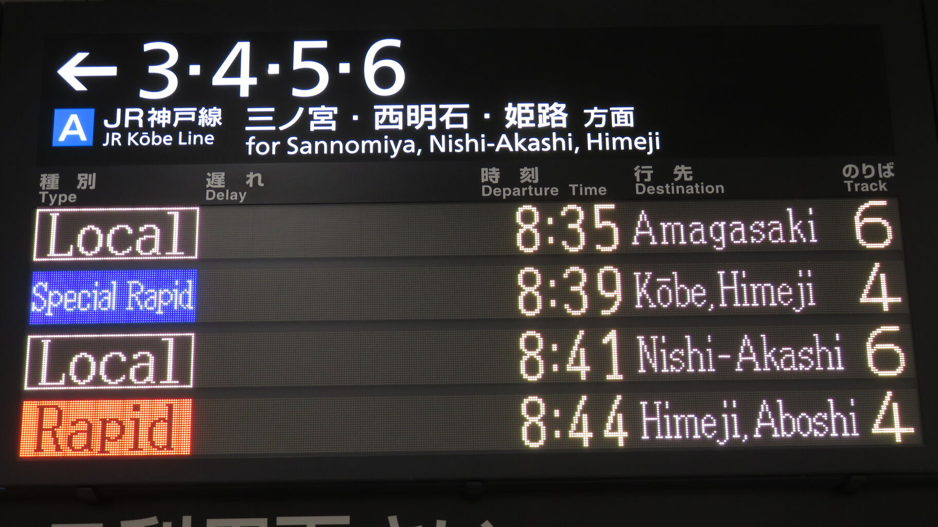 一番上の段に、本日8本目の普通 尼崎行きが表示されています。