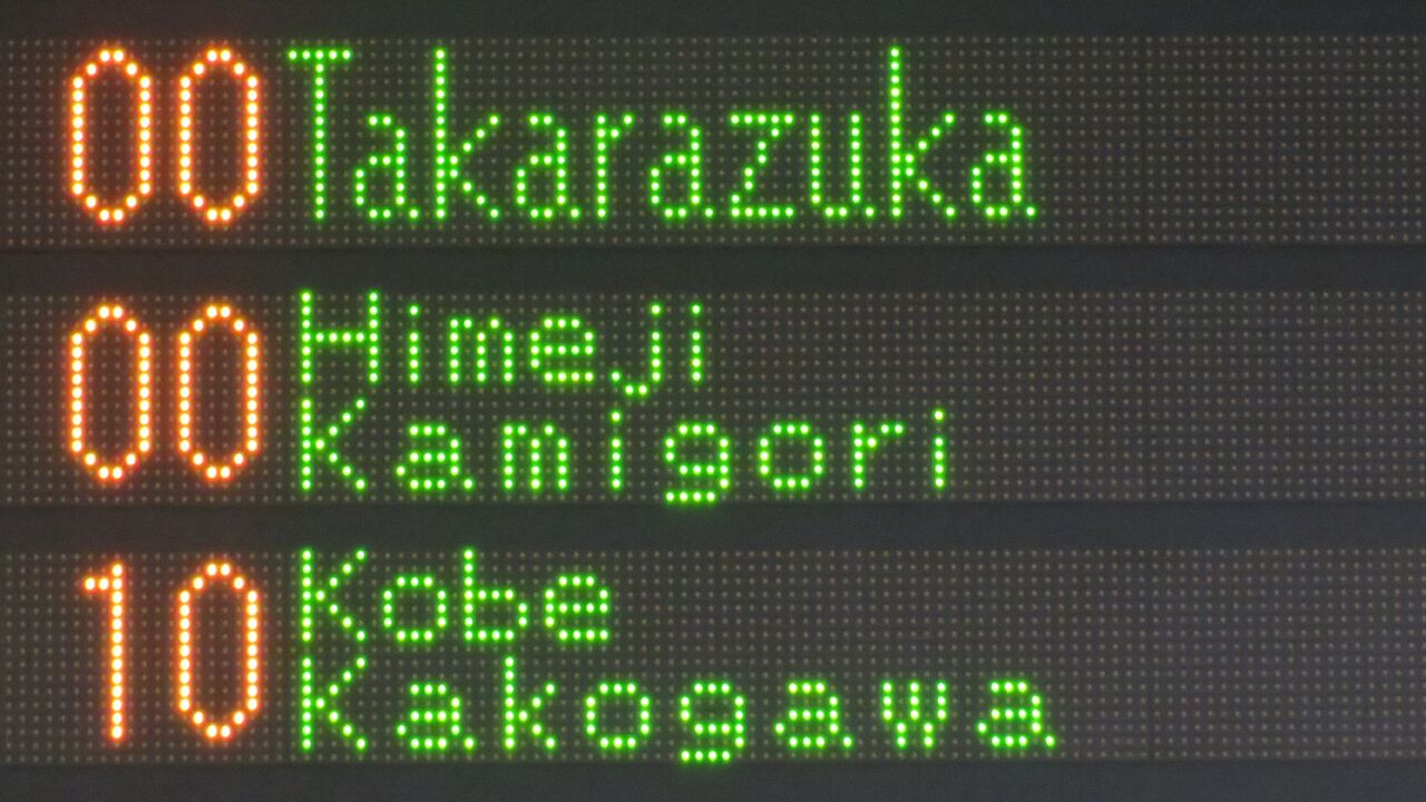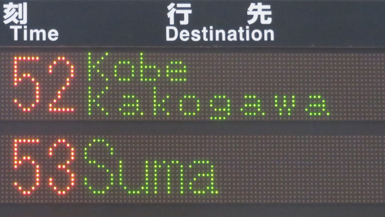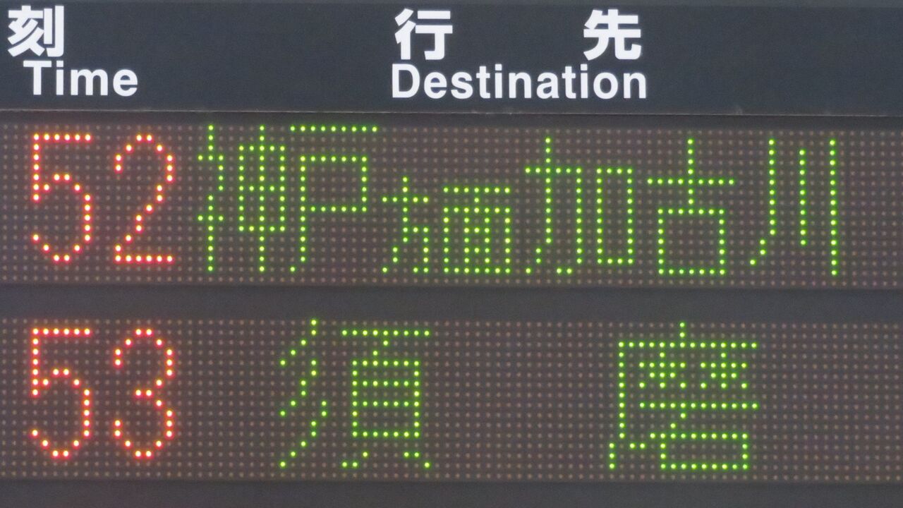 こちらが、2024年7月に撮影した 「神戸方面 加古川行き」 の表示です。
